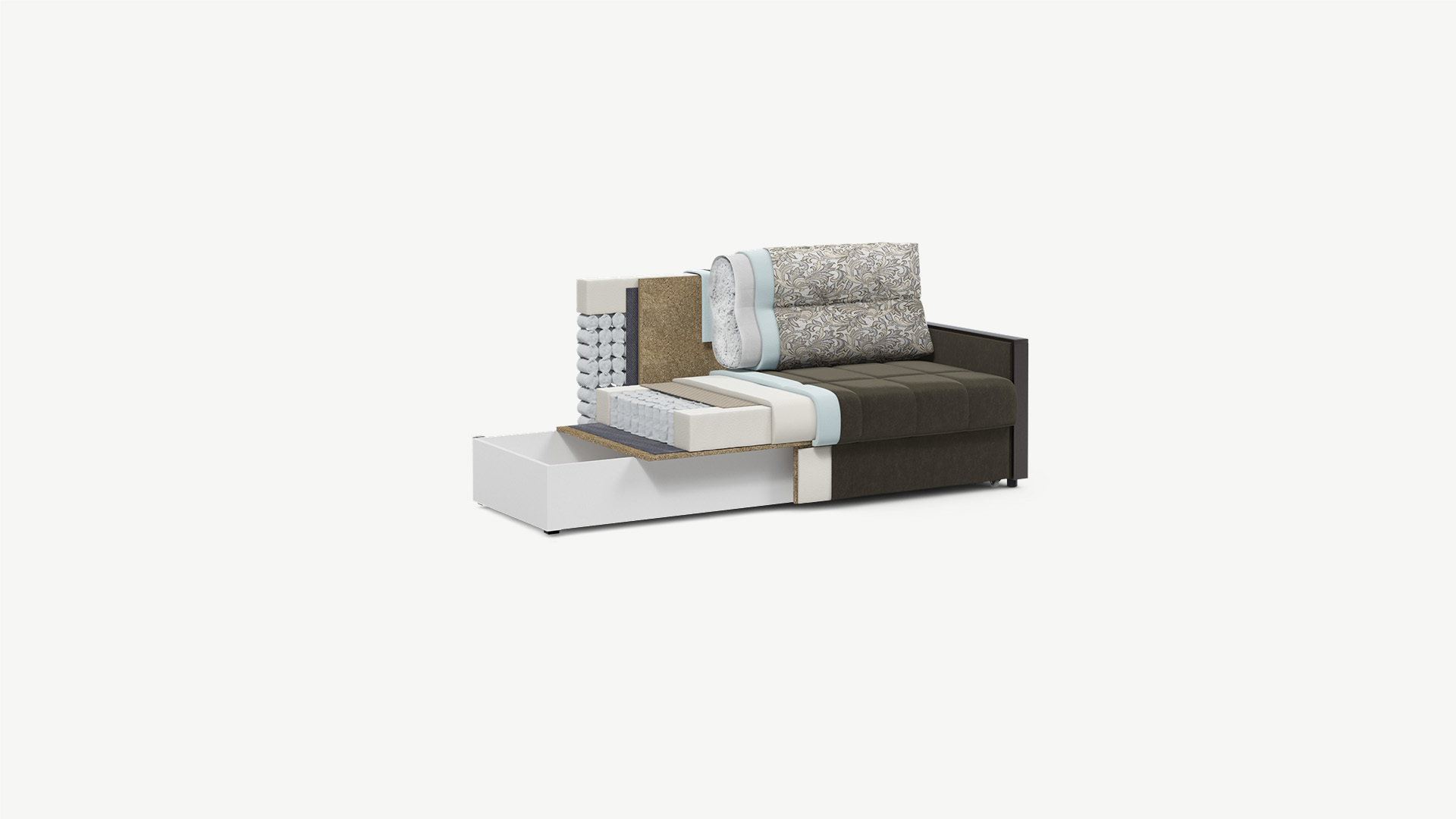 Фактура обивочного материала подбирается дизайнерами с учетом технологических и стилевых особенностей дивана. Профессиональный подход к подбору типа и цвета ткани позволяет находить наиболее удачное решение для каждого Дизайна.