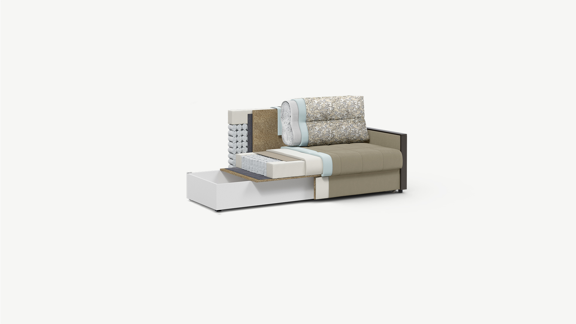 Фактура обивочного материала подбирается дизайнерами с учетом технологических и стилевых особенностей дивана. Профессиональный подход к подбору типа и цвета ткани позволяет находить наиболее удачное решение для каждого Дизайна.