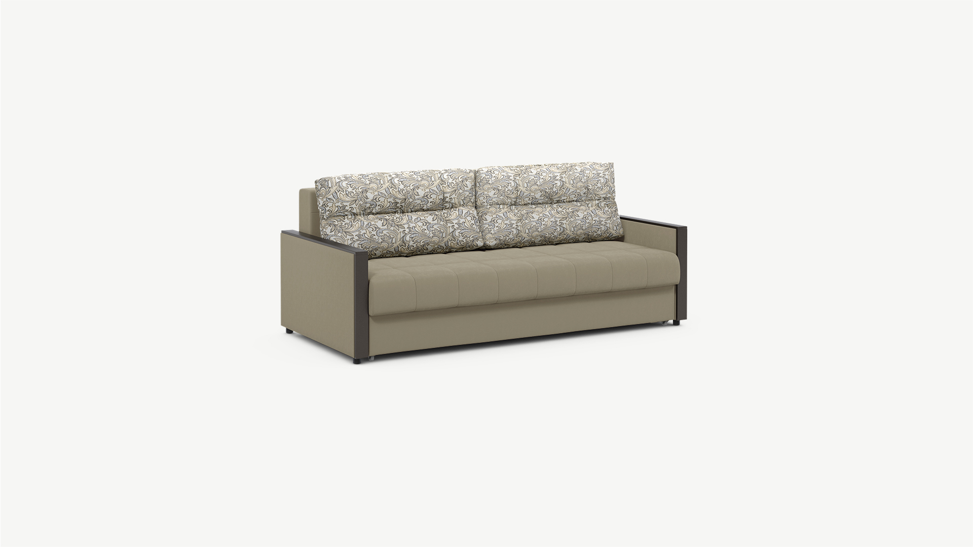 На подлокотники со столешницей Вы всегда сможете поставить чашечку чая. Имитируя фактуру дерева, декоративная накладка здесь буквально обрамляет подлокотники дивана, становясь стильным и практичным решением.