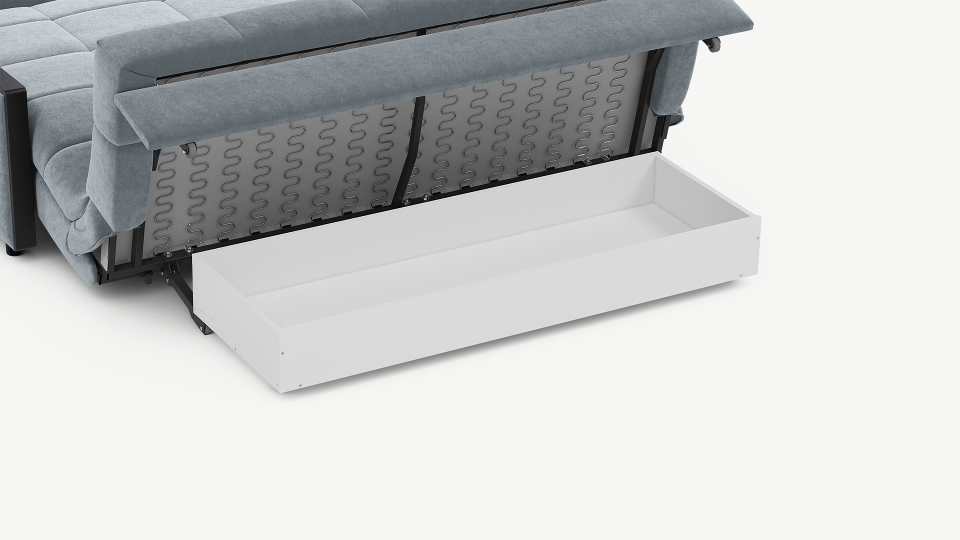 В настоящий момент набирает популярность использование бельевых коробов в качестве емкости для хранения. Например, для некоторых механизмов трансформации количество одновременно установленных бельевых коробов варьируется — один или несколько бельевых коробов могут быть установлены под нужными секциями дивана на Ваш выбор.