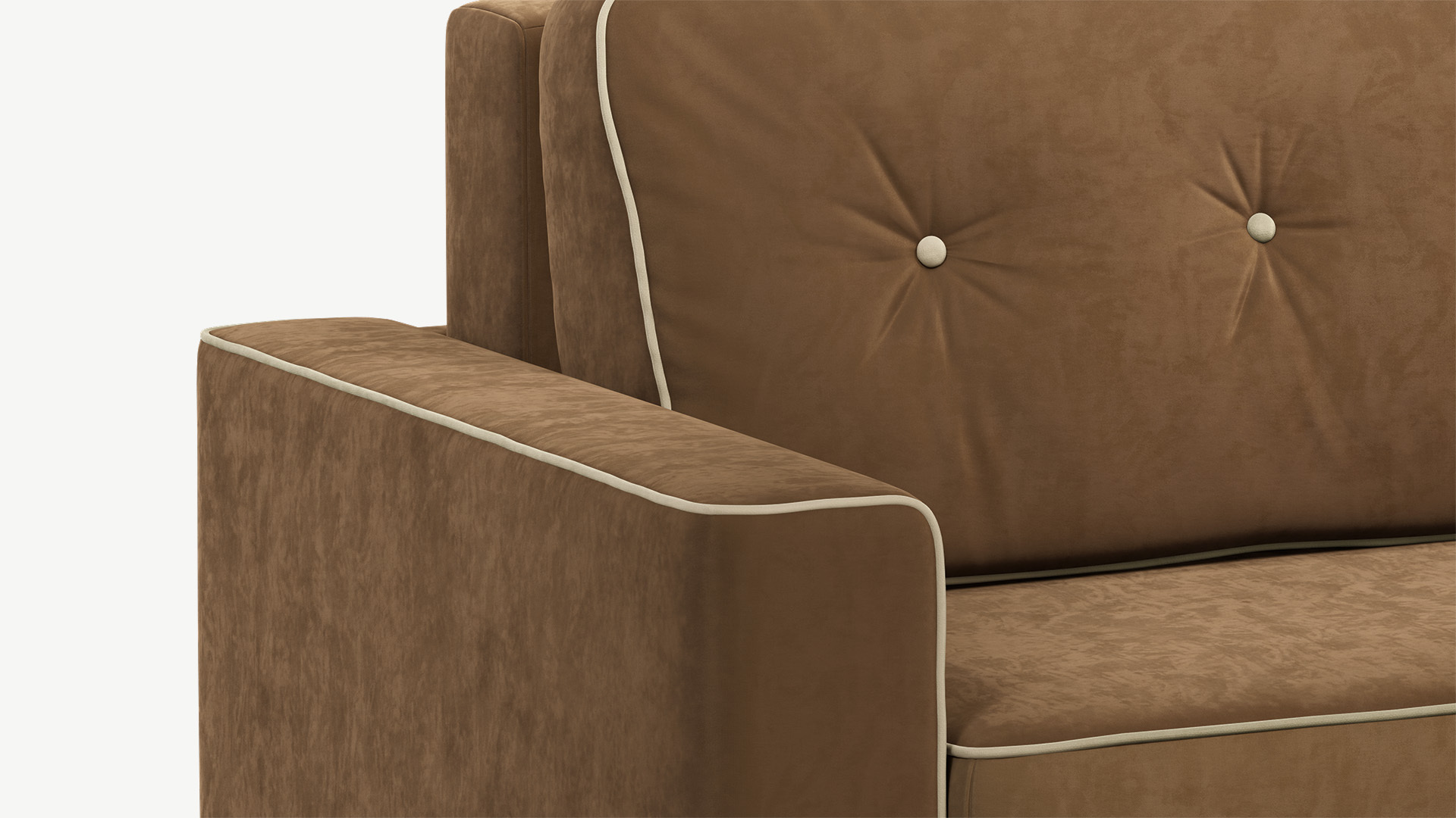 ДиванДизайн MOONFAMILY 122 презентует спокойный и очень уютный ретро-образ, созданный при помощи нескольких точных штрихов и декоративных элементов. Прежде всего оригинальных приспинных подушек с утяжкой на пуговицах, а также пропущенного по форме контрастного канта. Кант огибает подлокотники по внешней стороне, успешно акцентируя ретро-стилистику образа