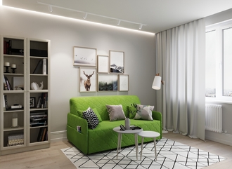 Диван покупала ребёнку в спальню год назад, очень компактный и стильный, спальное место просторное и удобное. Ткань быстро моется и сохнется.