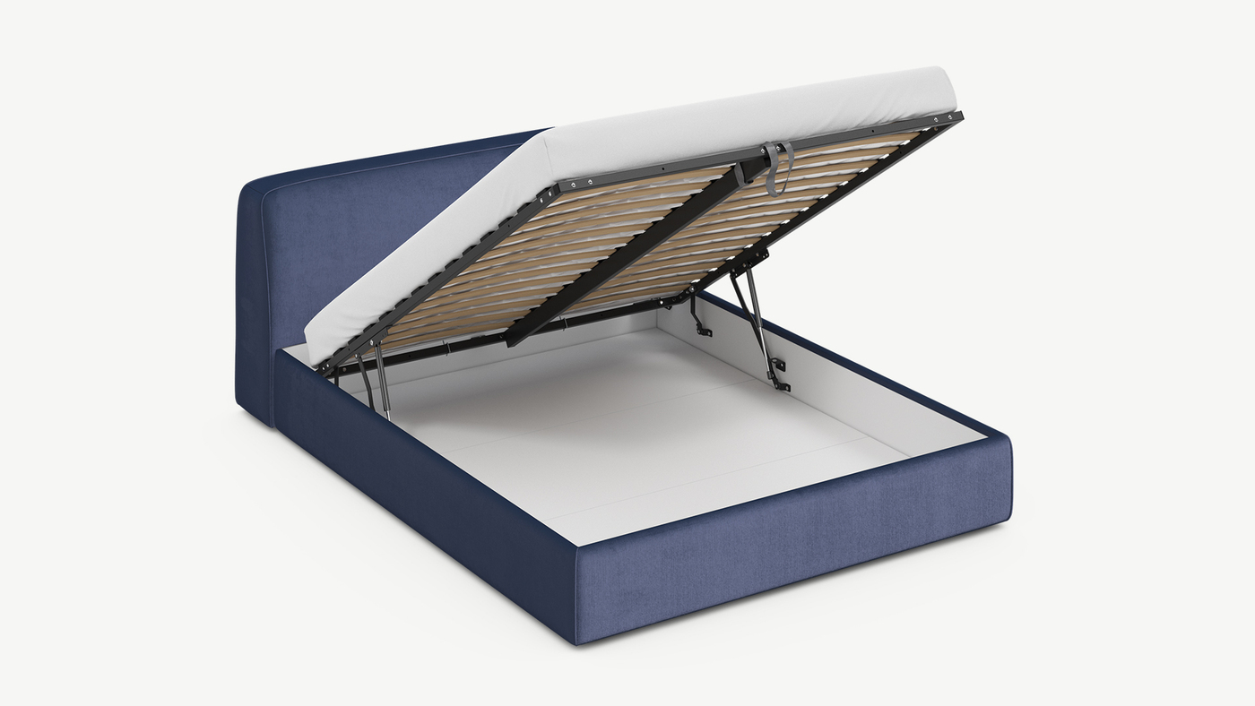 • Скрытая под основанием вместительная емкость без внутренних перегородок позволяет использовать всю площадь подкроватного пространства для хранения вещей.