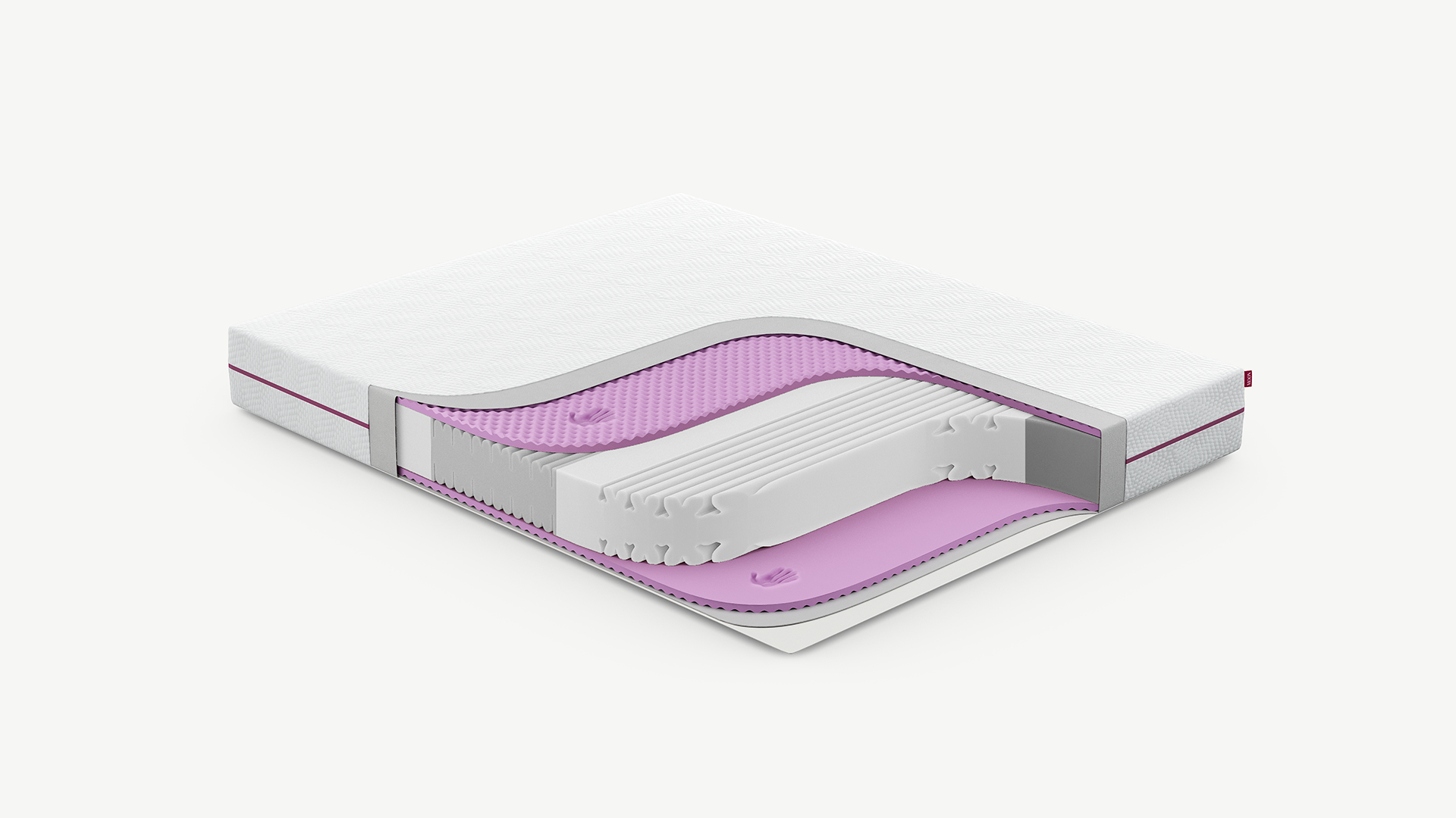 В этом матрасе для основы используется пенный материал PROFILEFOAM. Качество поддержки спины беспружинных матрасов зависит от эластичности пен. Чем выше эластичность, тем лучше поддержка спины.