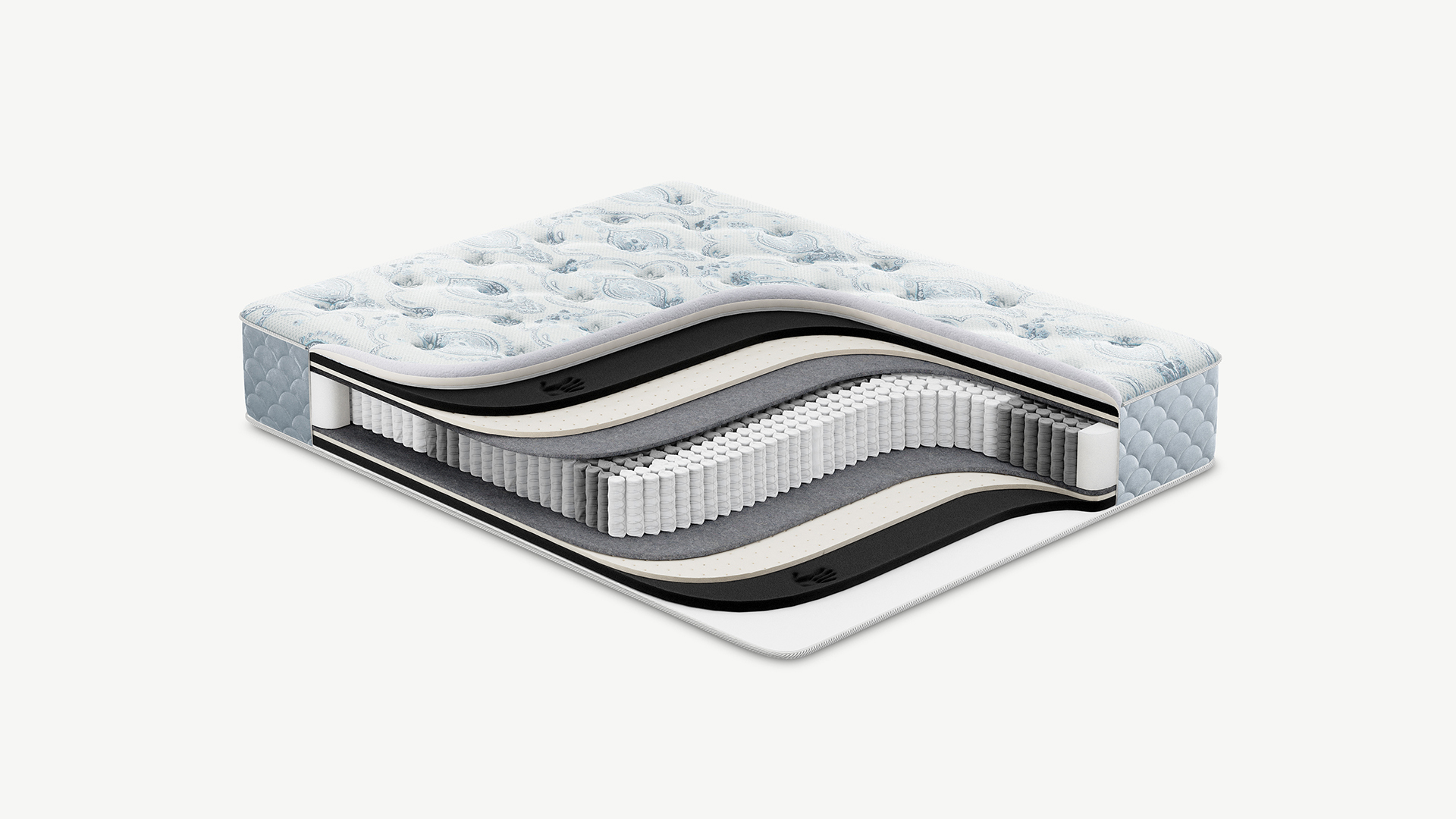 Обеспечивает естественный воздухообмен и сохраняет форму матраса. Выполнен из плотного трикотажа, простеганного на слое упругой пены и искусственного объемного волокна. Точечная стежка поддерживает превосходный уровень комфорта и не позволяет наполнителю смещаться в процессе эксплуатации.