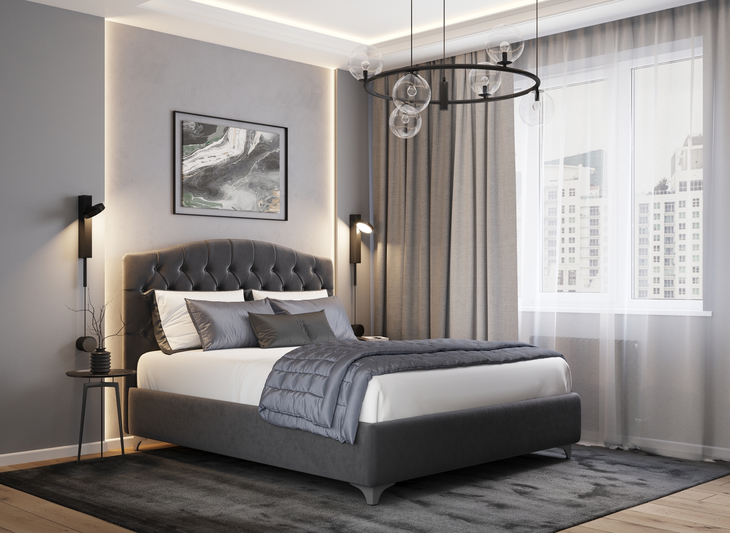 Разнообразие цветовой палитры позволит подобрать желаемый оттенок обивочной ткани. Использование светлых цветов поддержит настроение стиля «Сканди». Приглушенные насыщенные оттенки оформят кровать в стиле «Лофт». Нейтральные оттенки в цвет интерьера обыграют спальню в Современном стиле.