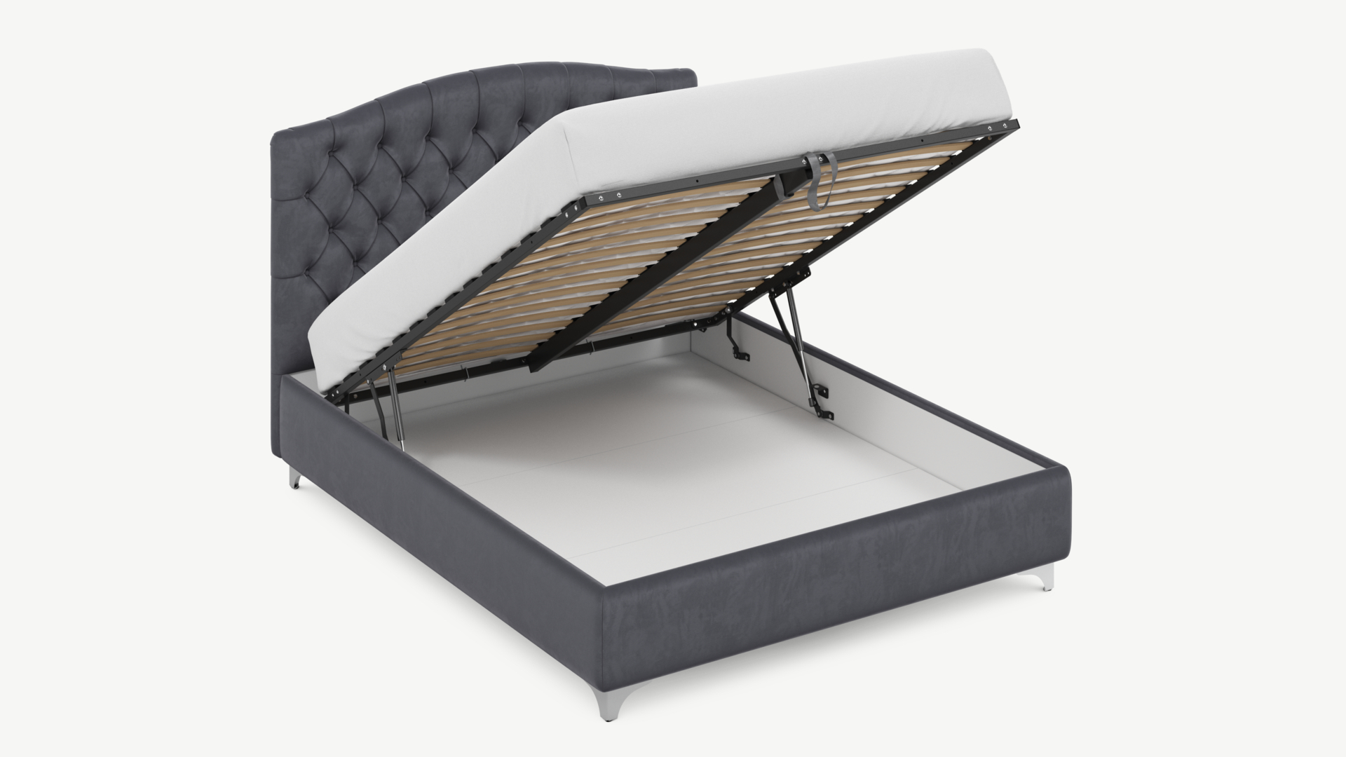 • Скрытая под основанием вместительная емкость без внутренних перегородок позволяет использовать всю площадь подкроватного пространства для хранения вещей.