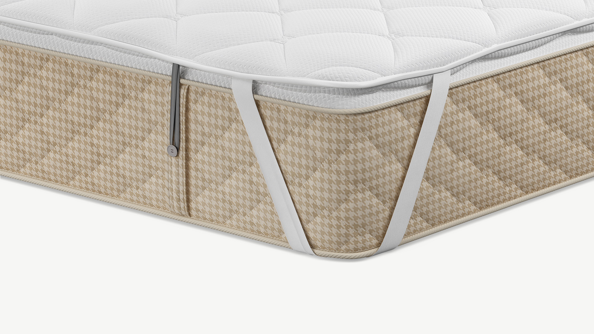 Топпер можно использовать как на диване, так и на матрасе. Фиксация на поверхности спального места осуществляется с помощью широких резинок в четырех угловых точках.