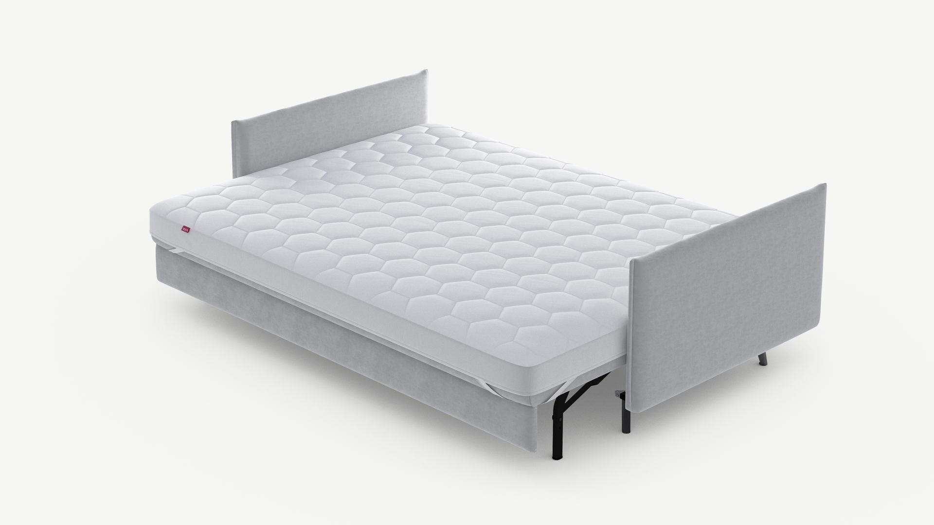 Верх чехла выполнен из прочного поликоттона с нежной сатиновой поверхностью и простеган на тонком слое воздушного волокна для дополнительной мягкости. Влагонепроницаемая пористая мембрана с внутренней стороны оберегает поверхность дивана от проникновения жидкости и загрязнений, не нарушая естественную циркуляцию воздуха на спальном месте.