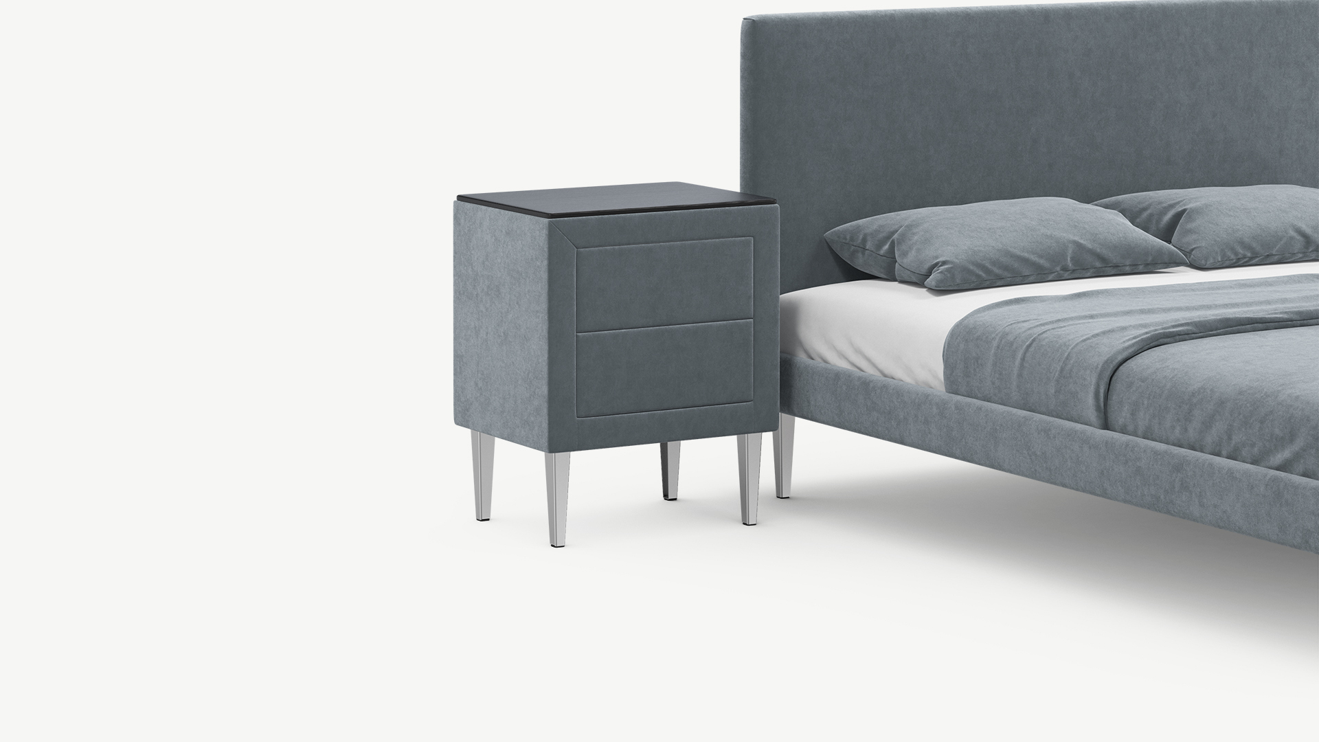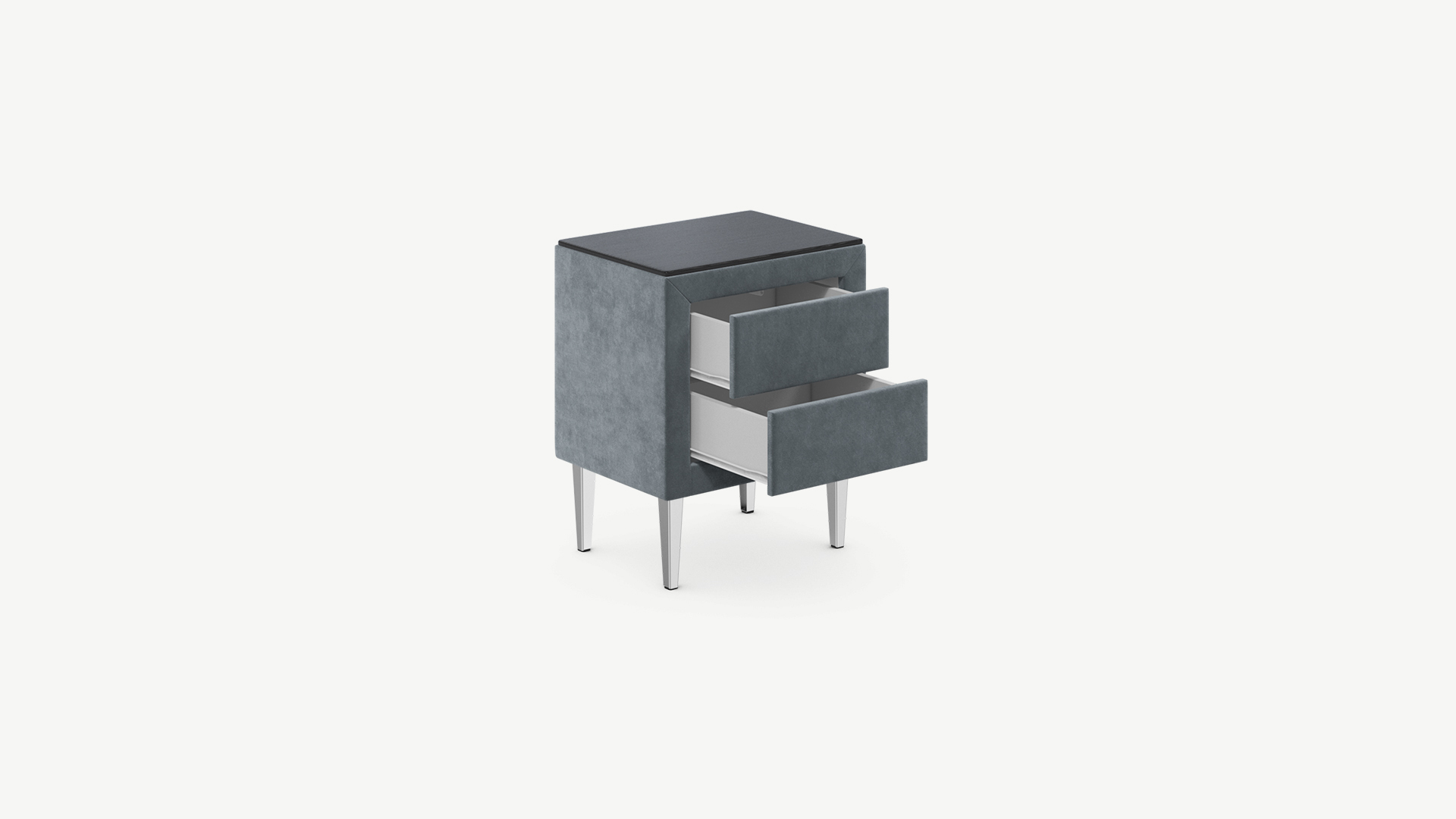 Мягкий притягательный шарм тумбы MOON 1010 — результат сразу нескольких удачных решений. Обитая тактильно приятной мебельной тканью, она деликатно поддерживает настроение спальни, создавая атмосферу гармонии и уюта. Современная система доступа к содержимому Push-to-open позволяет открывать ящик легким нажатием на панель — Вы получаете стильный, абсолютно лаконичный Дизайн, реализованный благодаря отсутствию традиционных ручек!