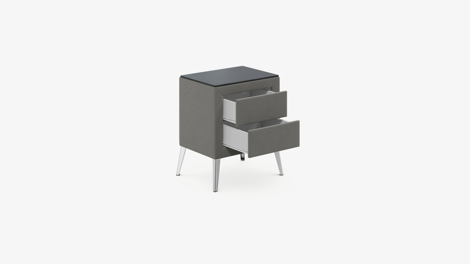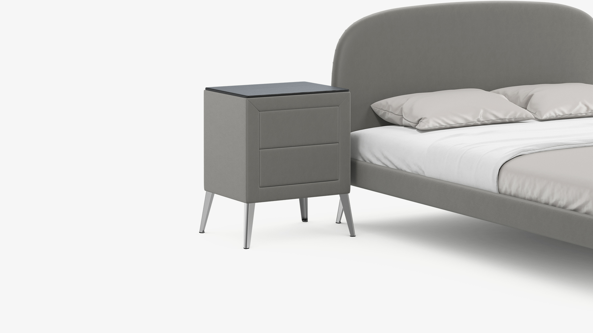 Тумба прикроватнаяМягкий притягательный шарм тумбы MOON FAMILY 1010 — результат сразу нескольких удачных решений. Обитая тактильно приятной мебельной тканью, она деликатно поддерживает настроение спальни, создавая атмосферу гармонии и уюта. Современная система доступа к содержимому Push-to-open позволяет открывать ящик легким нажатием на панель — Вы получаете стильный, абсолютно лаконичный Дизайн, реализованный благодаря отсутствию традиционных ручек!