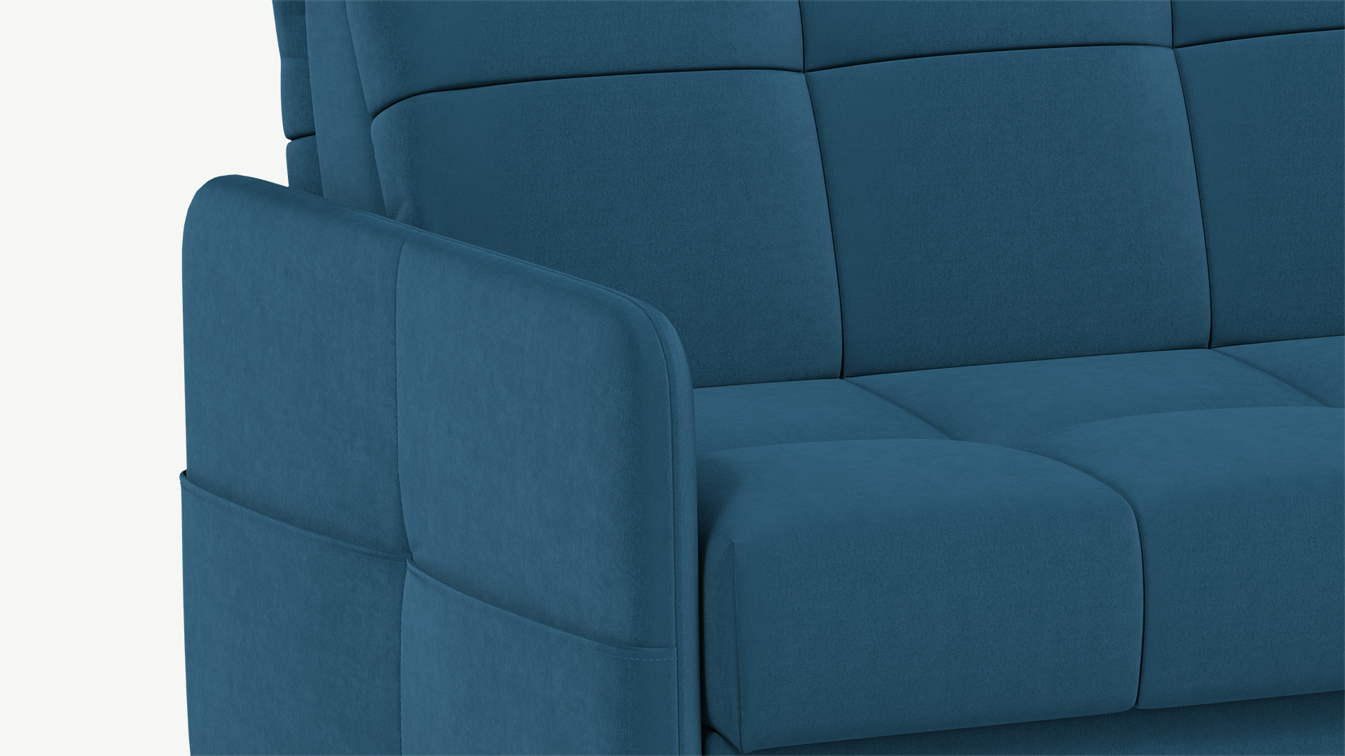 Диван удивит Вас необычной функциональностью. У подлокотников дизайна MOON 120 есть карманы! Так, отдыхая, Вы держите под рукой все необходимое — от ноутбука и пульта до… помады! Мягкие узкие подлокотники и стежка в квадрат, использованная практически для всей поверхности дивана, задают дизайну современный образ. Узкие подлокотники — это не только тренд последнего времени, но еще и компактность. Удачные визуальные решения делают диван стильным.