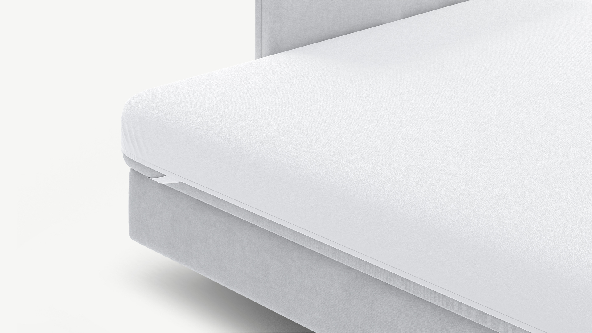 Укороченный бурлет высотой 8 см прикрывает края спального места, препятствуя попаданию загрязнений под защитный чехол.