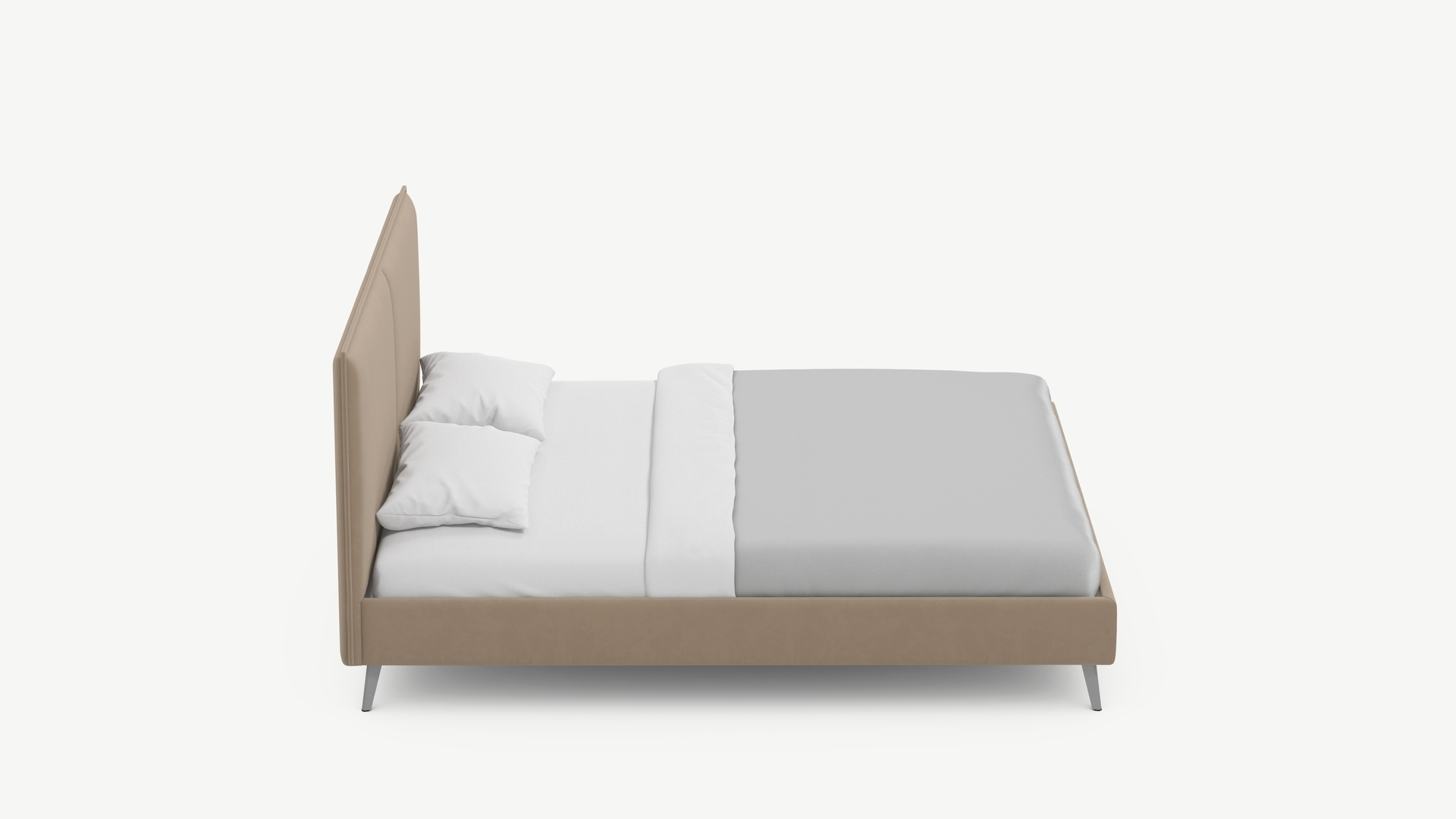 Кровать MOON 1171 привлекает внимание лаконичным дизайном и изяществом высоких наклонных опор. Кант, ограняющий изголовье, подчеркивает эстетику строгих форм и задает интерьеру стильное звучание.