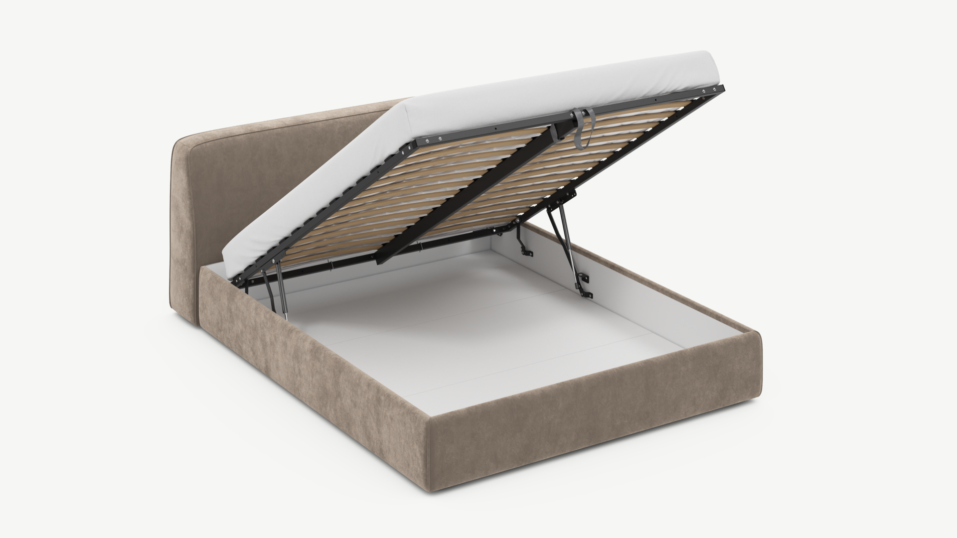 - Скрытая под основанием вместительная емкость без внутренних перегородок позволяет использовать всю площадь подкроватного пространства для хранения вещей.