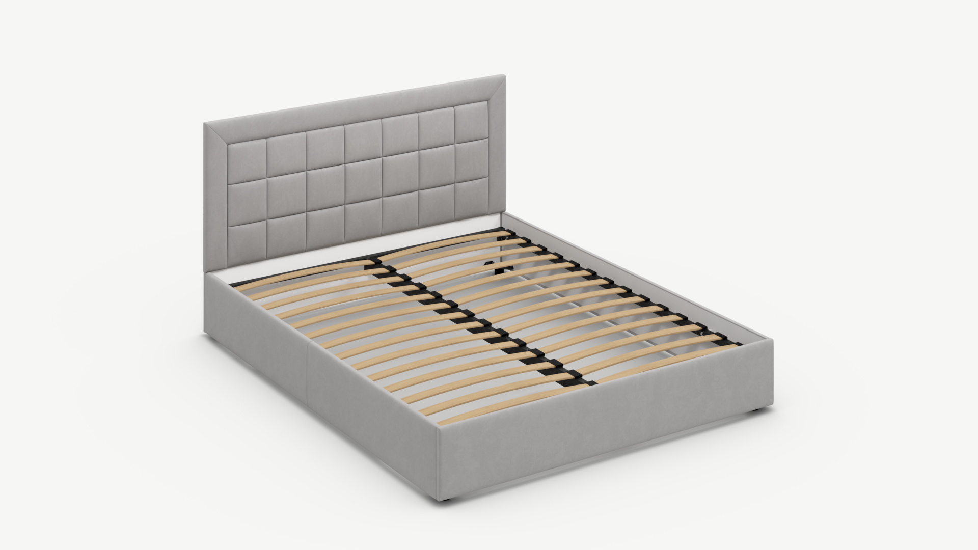 Проходящая по центру рамы металлическая траверса (поперечная балка) увеличенного сечения обеспечивает необходимую прочность основания с березовыми ламелями, препятствуя деформации конструкции.
