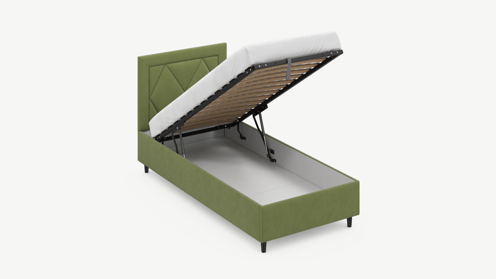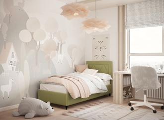 • Скрытая под основанием вместительная емкость без внутренних перегородок позволяет использовать всю площадь подкроватного пространства для хранения вещей.