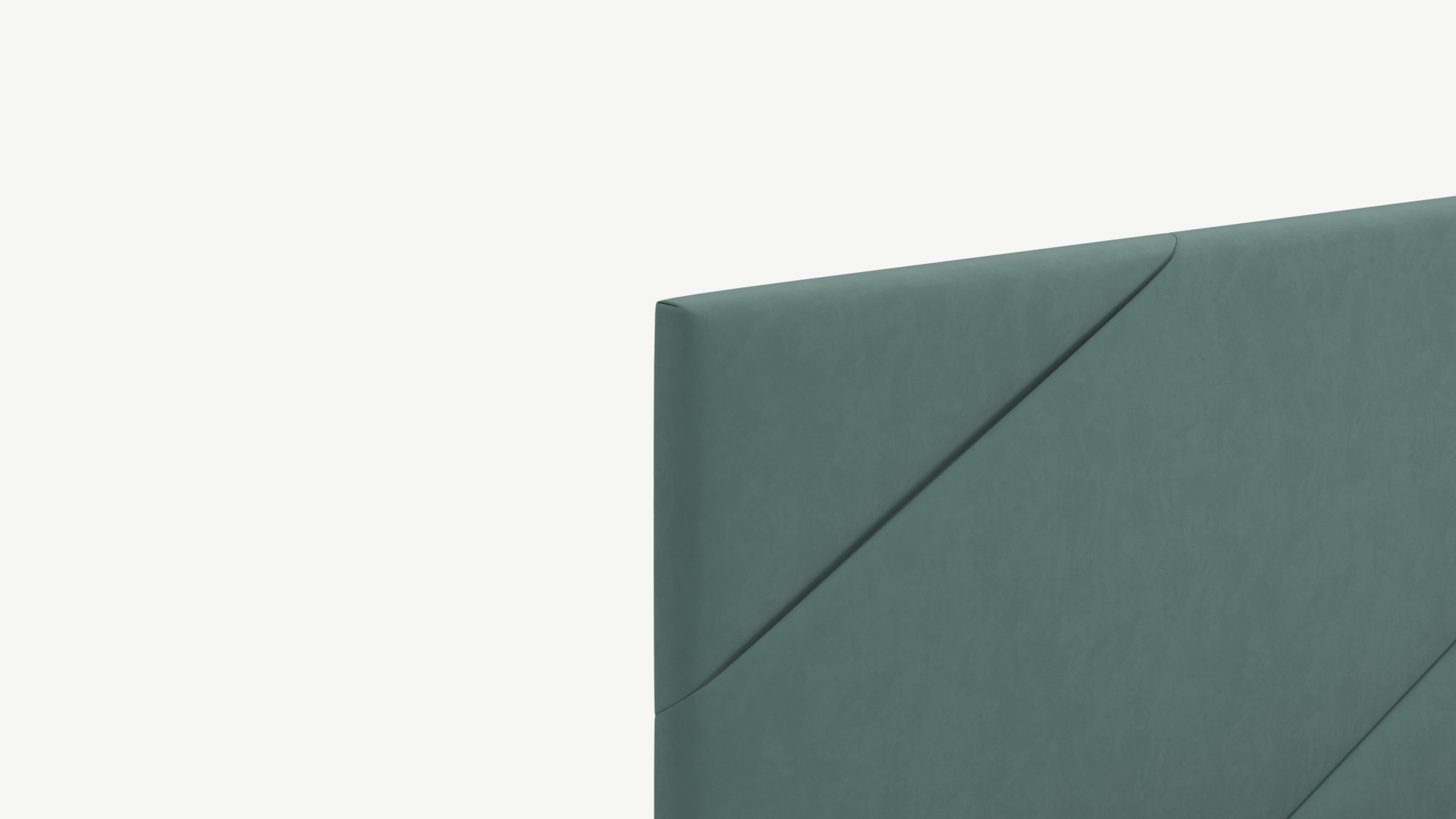 MOON FAMILY 1257 привлекает внимание оригинальным исполнением: широкие полосы ткани эффектно пересекают периметр изголовья, создавая на нем графический орнамент. Элегантным и практичным акцентом служат скрытые карманы, расположенные по его углам. Лаконичные формы объемных царг создают единый гармоничный образ и фокусируют внимание на центральном текстурном элементе кровати.