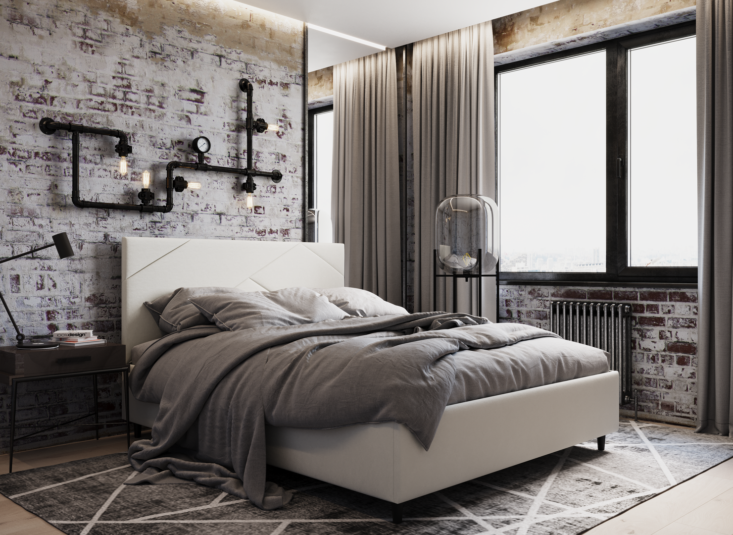 Элегантным и практичным акцентом служат скрытые карманы, расположенные по его углам. Лаконичные формы объемных царг создают единый гармоничный образ и фокусируют внимание на центральном текстурном элементе кровати.