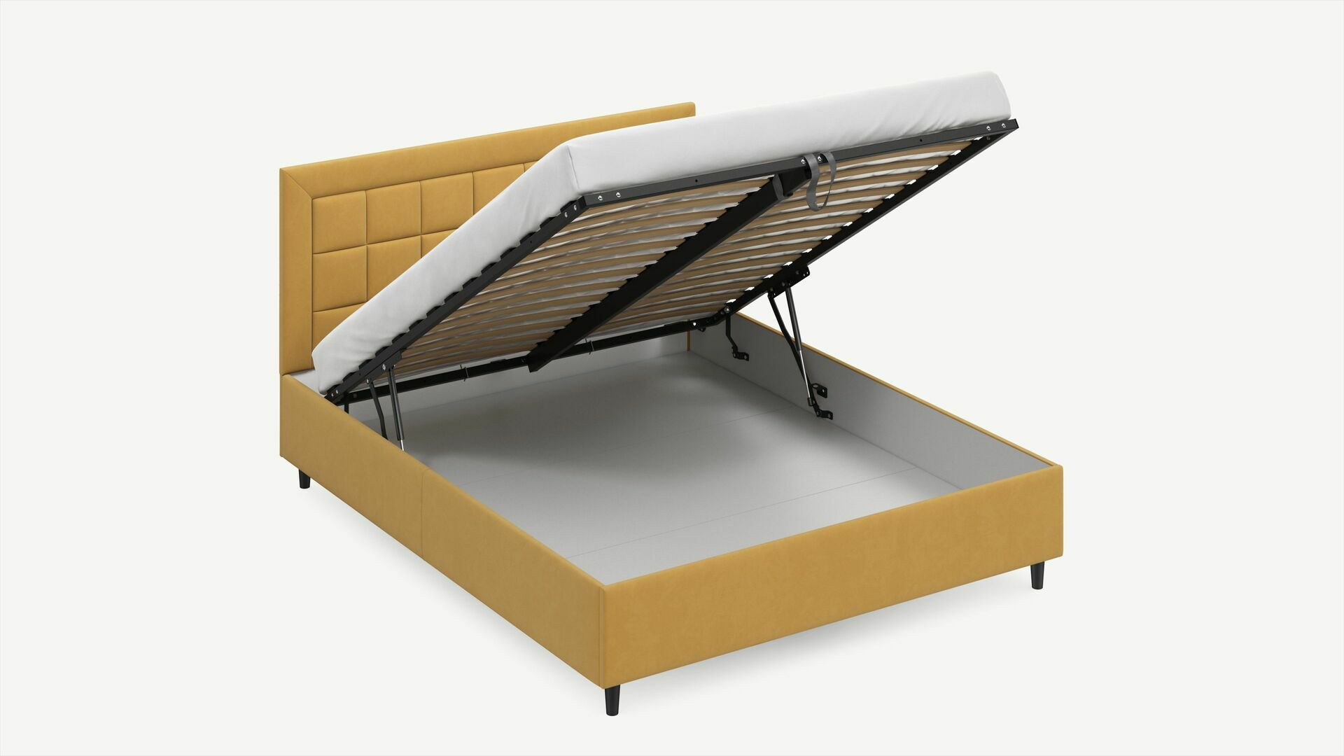 Стежка помещена в центр изголовья и обрамлена, словно картина. Объемные царги завершают цельную фигуру кровати и становятся гармоничным дополнением ее образа.
