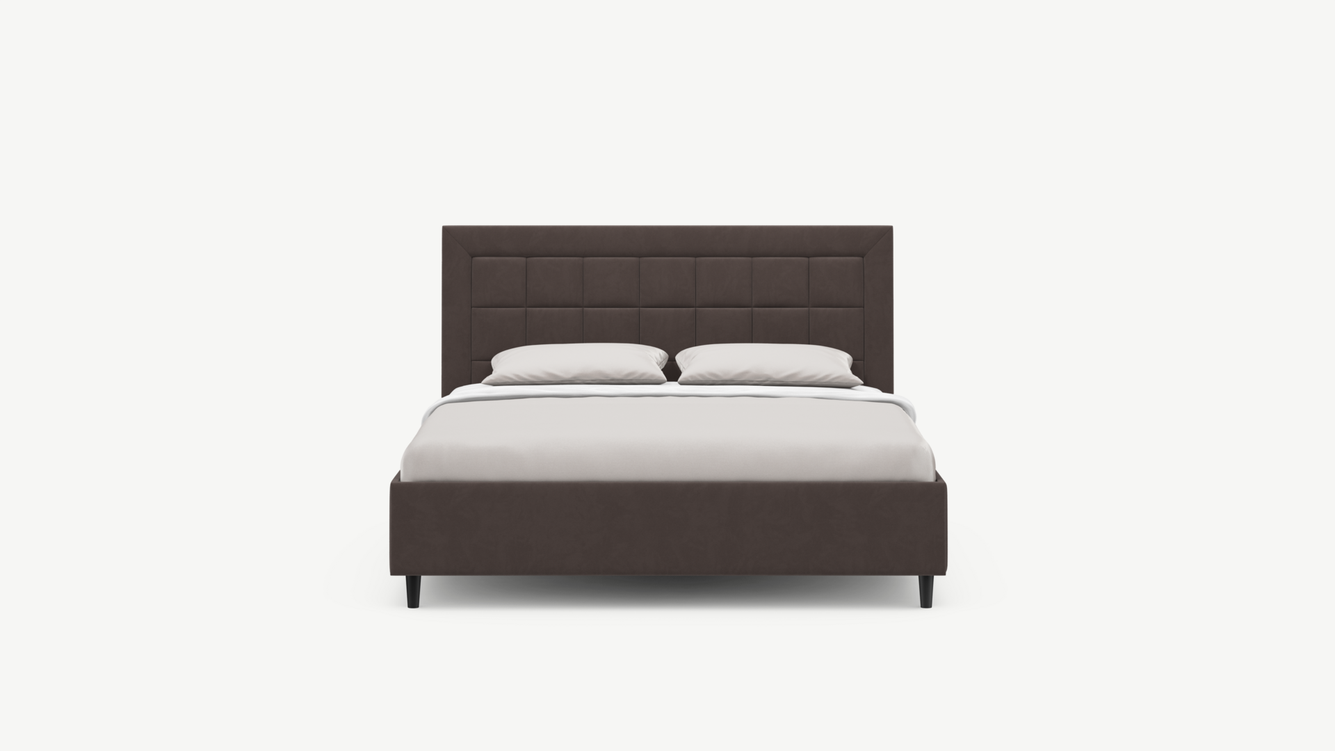 Стежка помещена в центр изголовья и обрамлена, словно картина. Объемные царги завершают цельную фигуру кровати и становятся гармоничным дополнением ее образа.