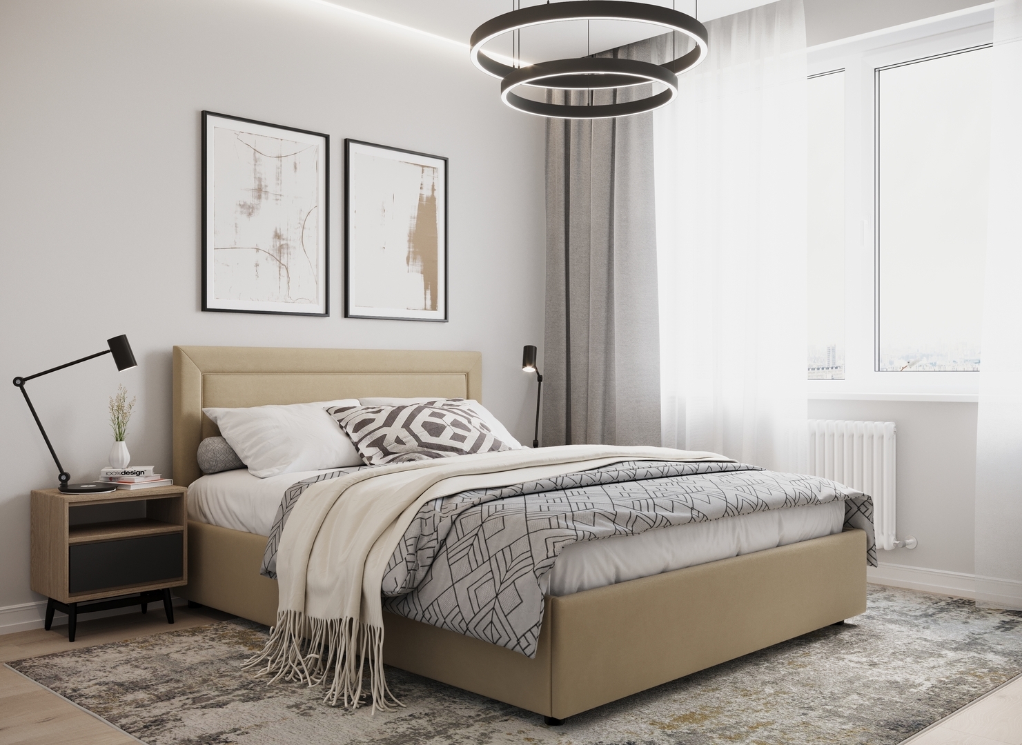 Создать гармоничный интерьер и завершить образ спальни помогут дополнительные аксессуары, например: тумбы, банкетки, подушки.