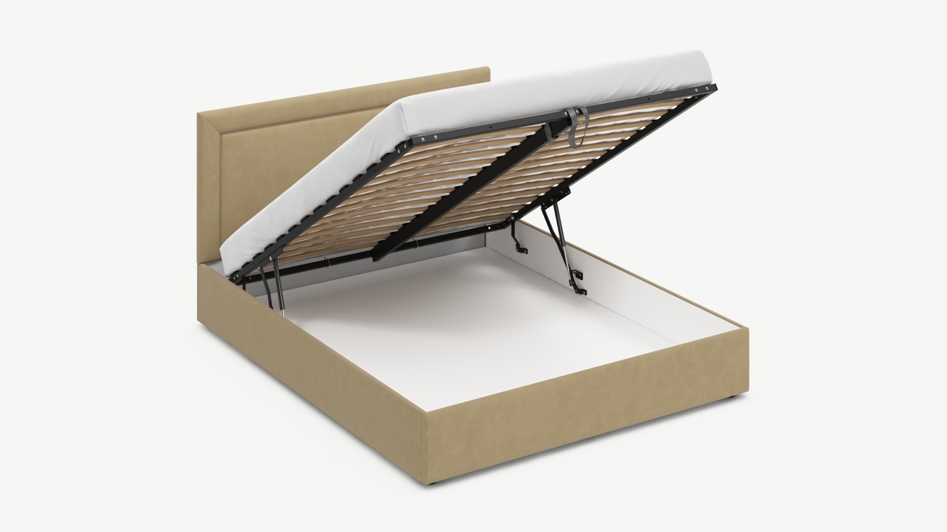 - Скрытая под основанием вместительная емкость без внутренних перегородок позволяет использовать всю площадь подкроватного пространства для хранения вещей.