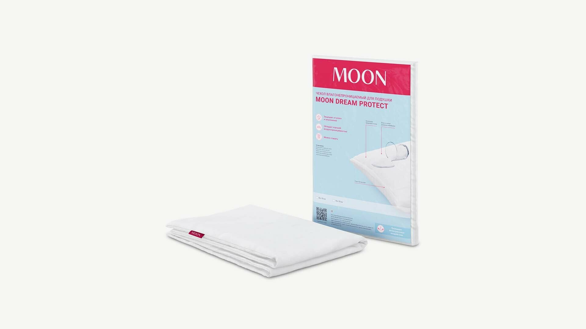 Чехол влагонепроницаемый для подушкиЗащитный чехол MOON DREAM PROTECT помогает сохранить гигиеническую чистоту подушки, надежно изолирует ее поверхность от появления загрязнений и следов намокания, а также поддерживает оптимальные условия для спокойного сна.