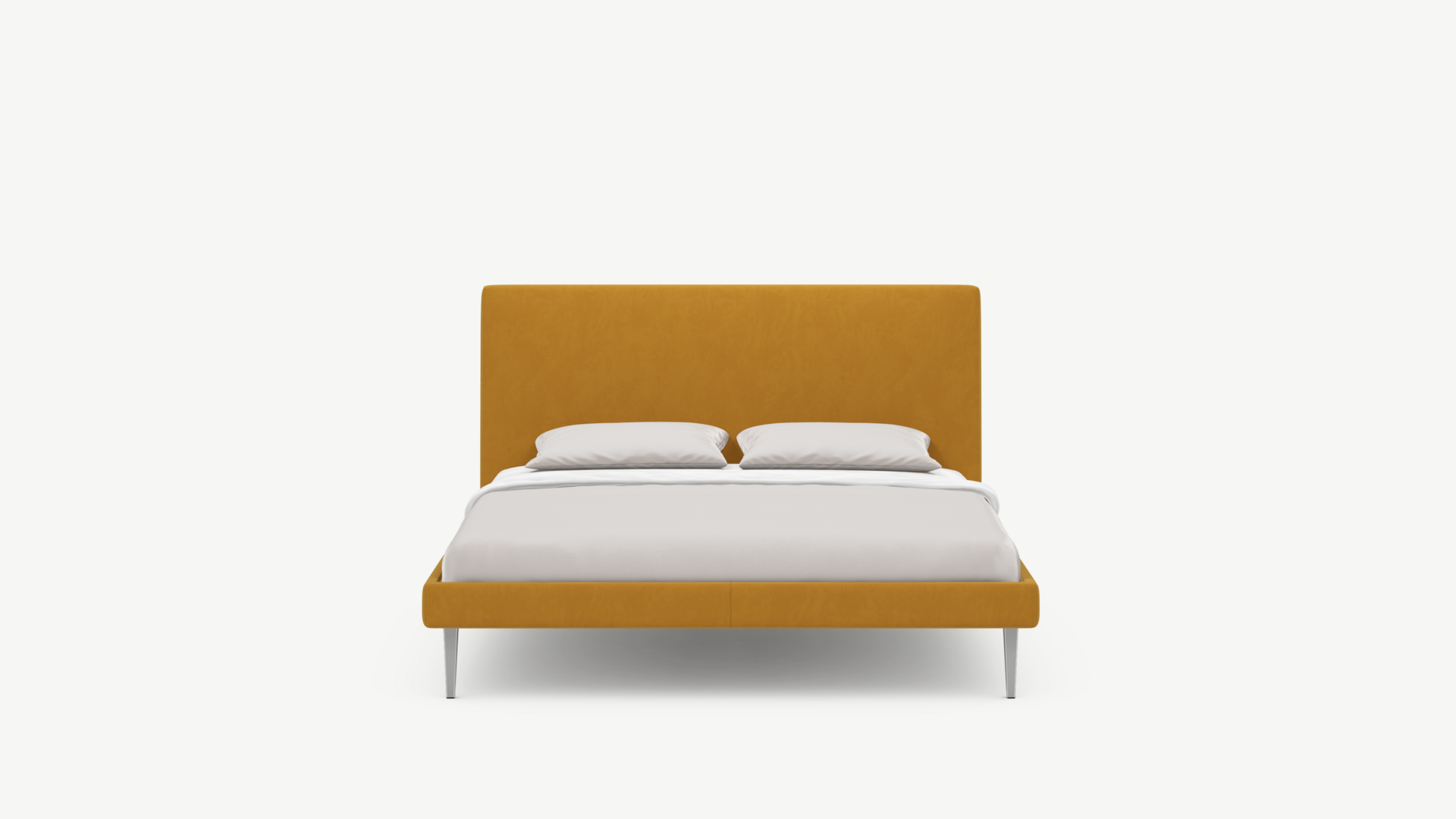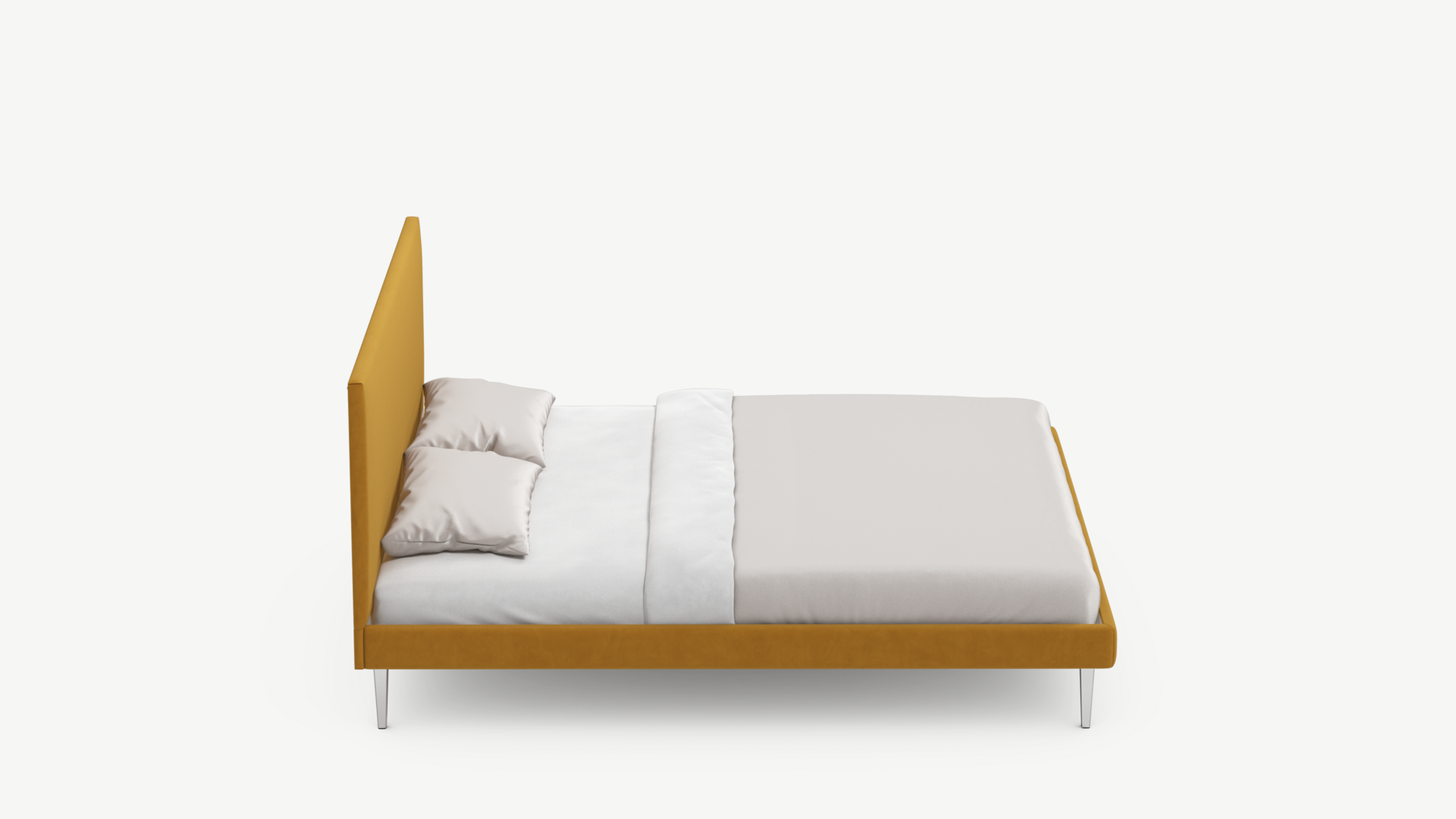 Кровать MOON FAMILY 1256 демонстрирует безупречный баланс изящных пропорций. Лаконичное изголовье, узкие царги и высокие опоры создают эффектный образ, привносящий в пространство спальни стильный и яркий акцент.