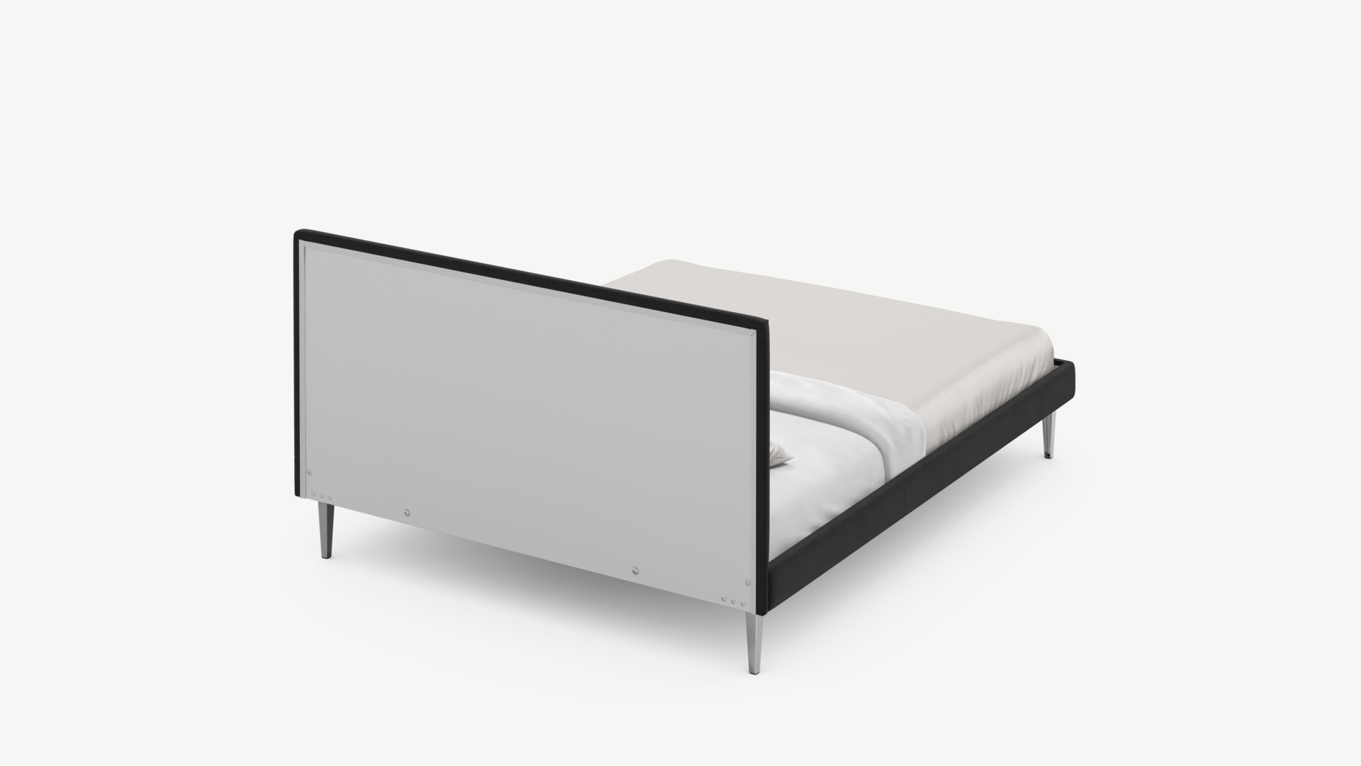 Кровать MOON FAMILY 1256 демонстрирует безупречный баланс изящных пропорций. Лаконичное изголовье, узкие царги и высокие опоры создают эффектный образ, привносящий в пространство спальни стильный и яркий акцент.