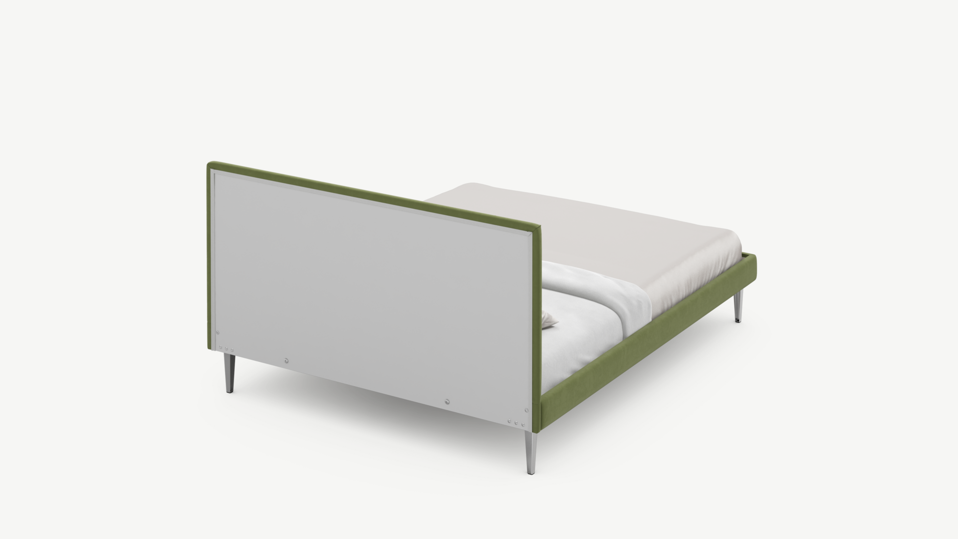 Кровать MOON FAMILY 1256 демонстрирует безупречный баланс изящных пропорций. Лаконичное изголовье, узкие царги и высокие опоры создают эффектный образ, привносящий в пространство спальни стильный и яркий акцент.