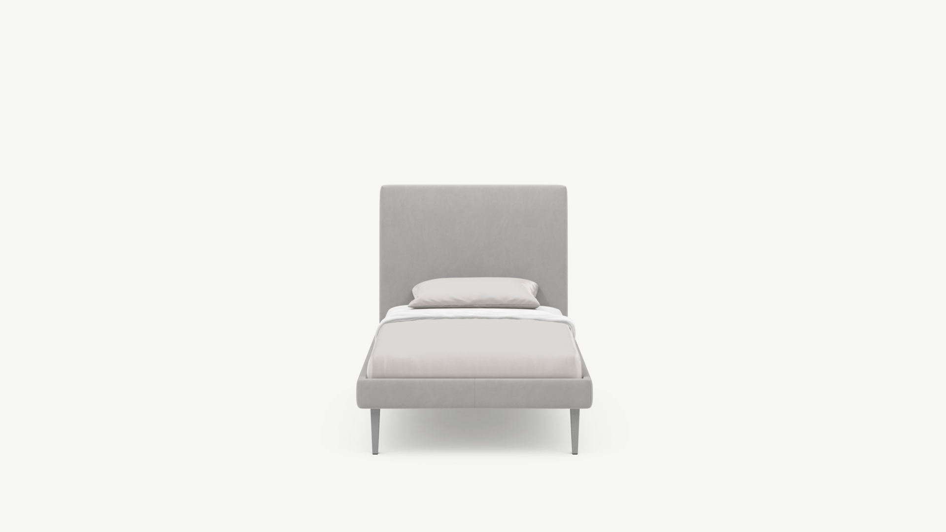 Кровать MOON FAMILY 1256 демонстрирует безупречный баланс изящных пропорций. Лаконичное изголовье, узкие царги и высокие опоры создают эффектный образ, привносящий в пространство спальни стильный и яркий акцент.