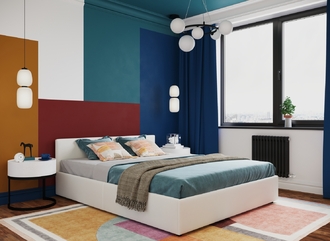 Создать гармоничный интерьер и завершить образ спальни помогут дополнительные аксессуары, например: тумбы, банкетки, подушки.