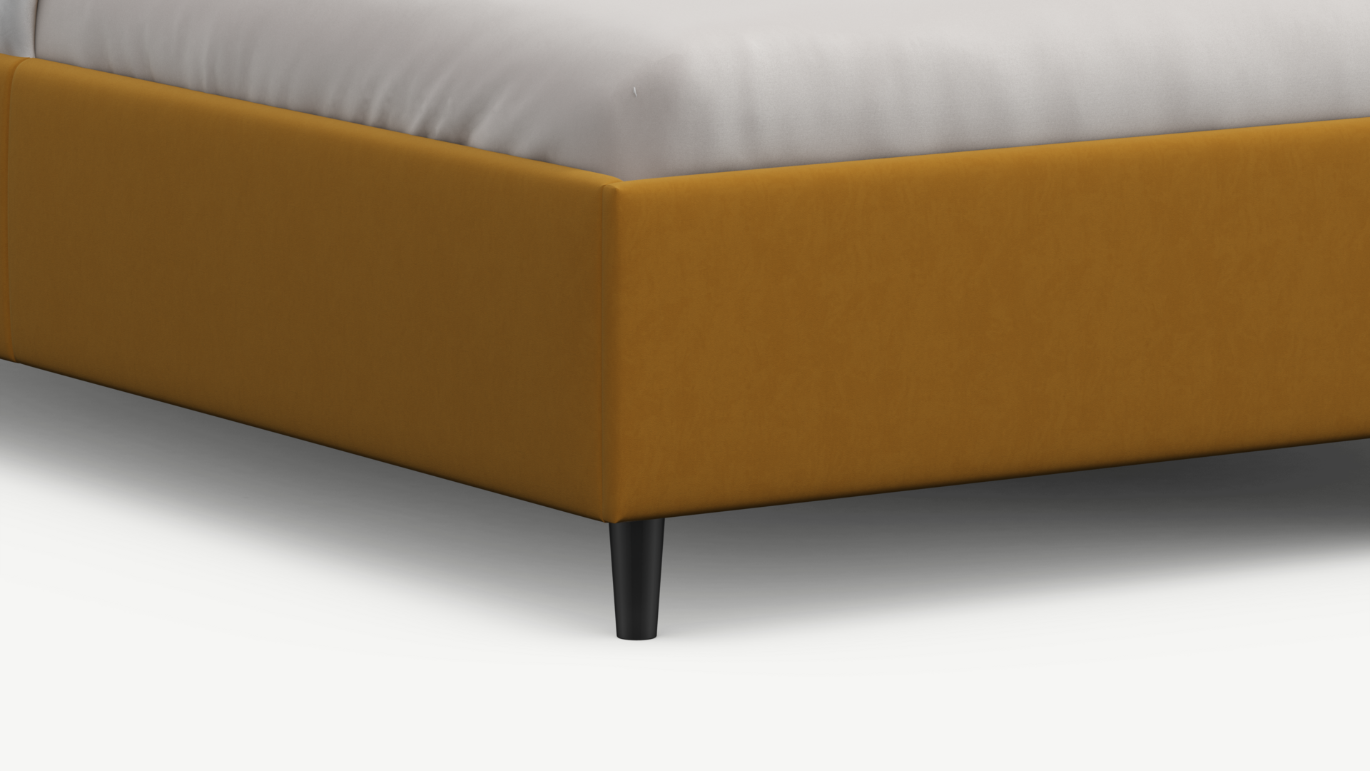 Декоративный шов на боковых царгах звучит элегантно и ненавязчиво, в то время как высокие опоры смотрятся модно и практично.