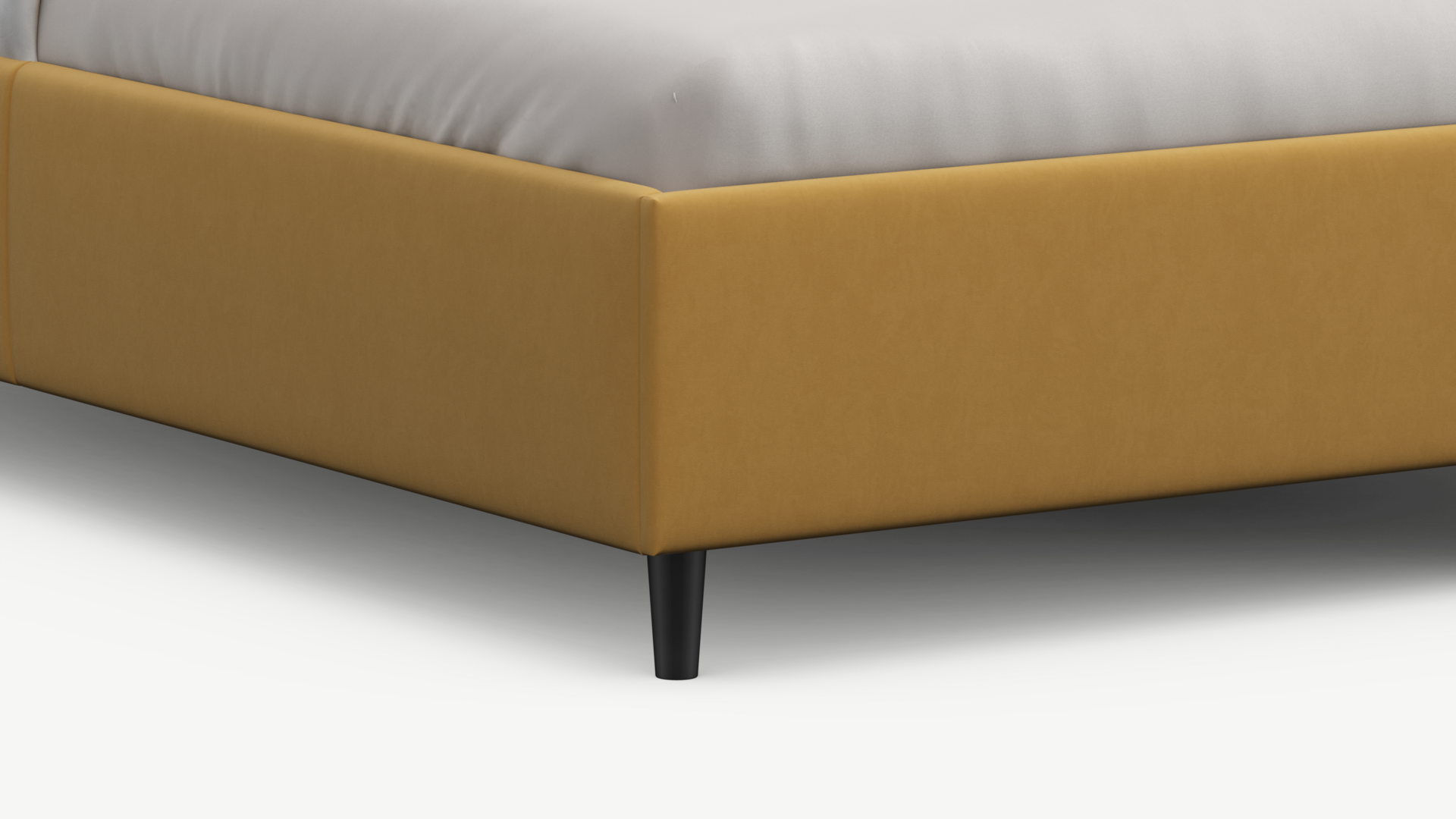 Декоративный шов на боковых царгах звучит элегантно и ненавязчиво, в то время как высокие опоры смотрятся модно и практично.