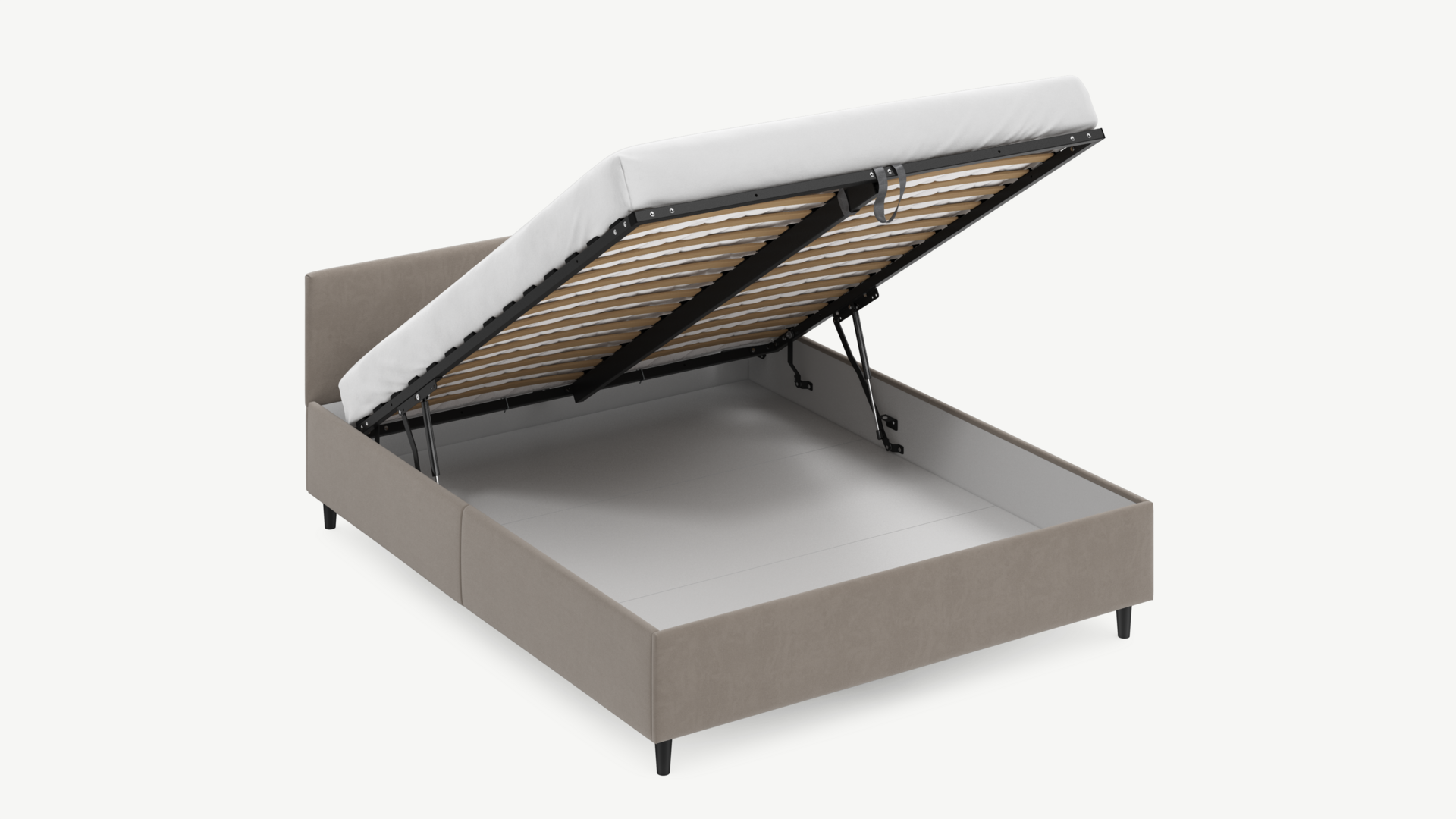 • Скрытая под основанием вместительная емкость без внутренних перегородок позволяет использовать всю площадь подкроватного пространства для хранения вещей.