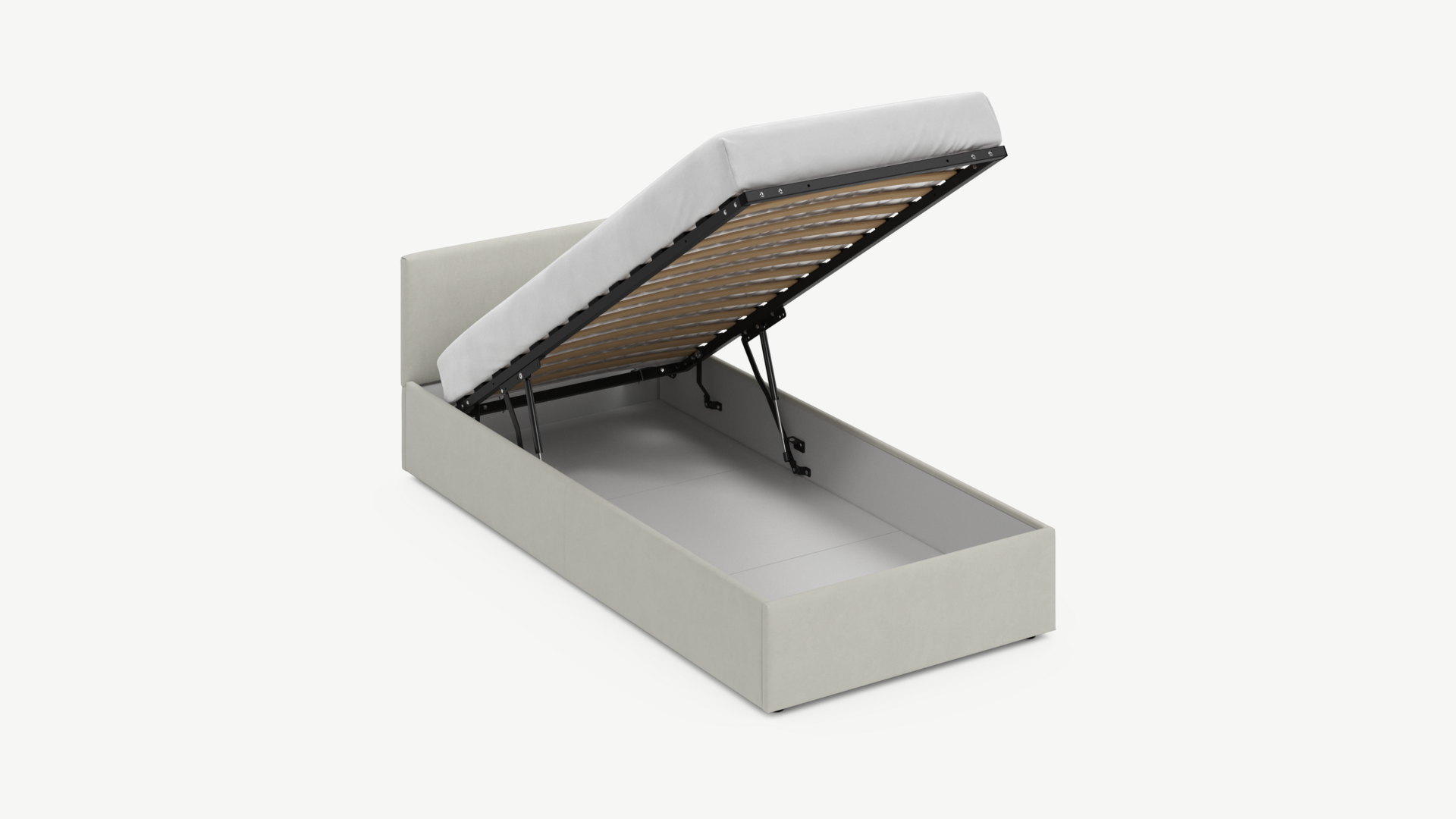 • Скрытая под основанием вместительная емкость без внутренних перегородок позволяет использовать всю площадь подкроватного пространства для хранения вещей.