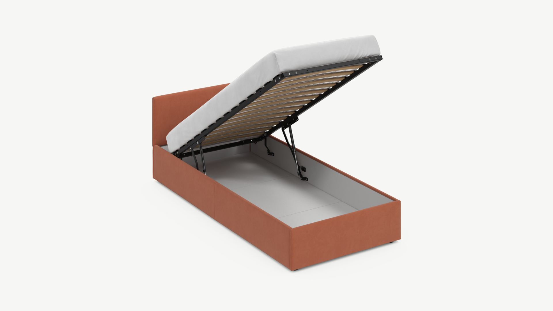 • Скрытая под основанием вместительная емкость без внутренних перегородок позволяет использовать всю площадь подкроватного пространства для хранения вещей.