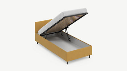 Вместительная емкость под кроватью без внутренних перегородок позволяет использовать для хранения вещей 100% пространства.