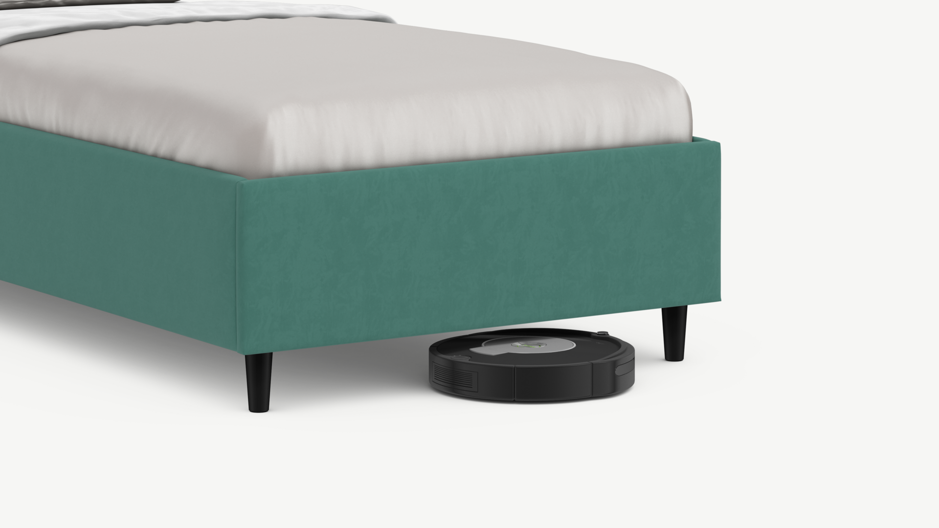 Благодаря высоким опорам под кроватью проходит робот-пылесос и легко проводится влажная уборка, что обеспечивает чистоту и порядок в доме.