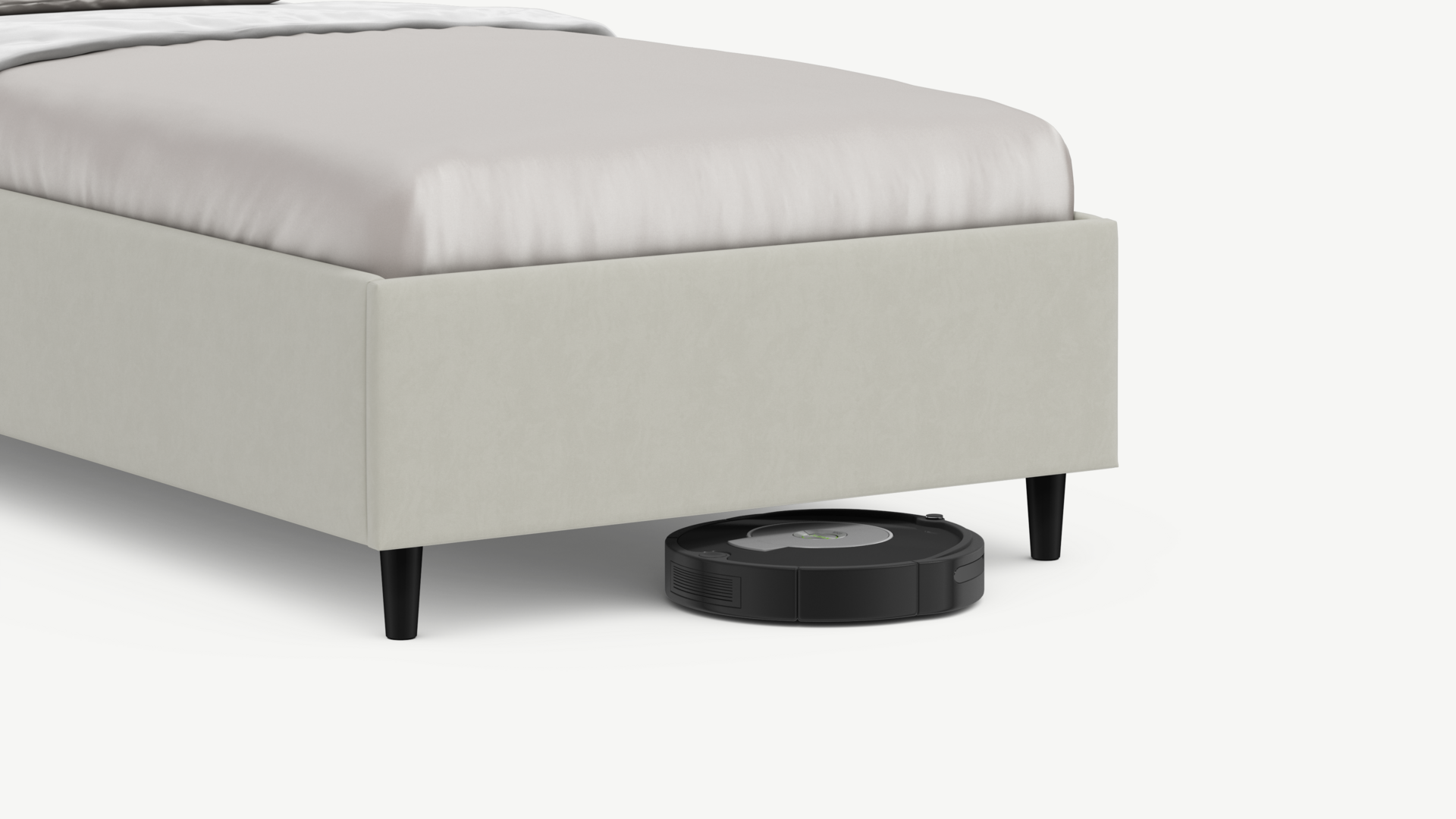 Благодаря высоким опорам под кроватью проходит робот-пылесос и легко проводится влажная уборка, что обеспечивает чистоту и порядок в доме.