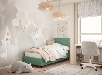 Фактура обивочного материала подбирается дизайнерами с учетом технологических и стилевых особенностей кровати.