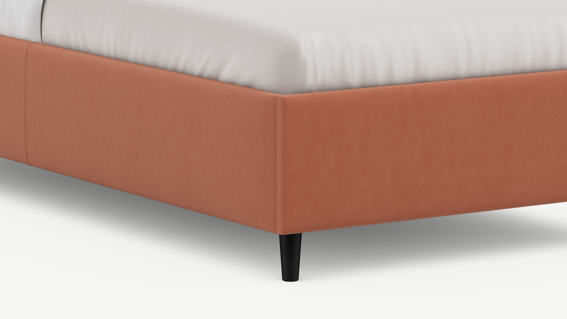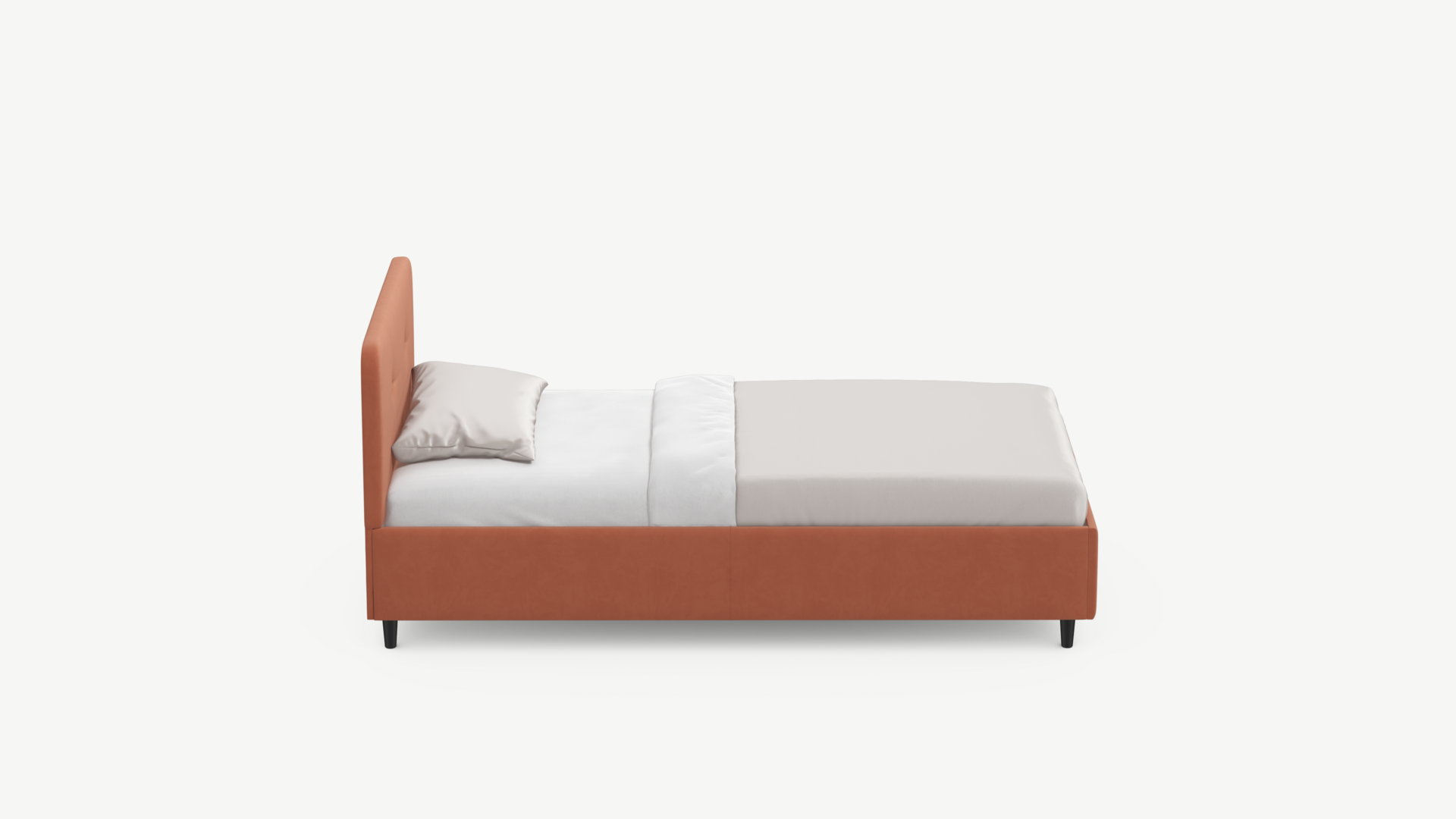 Царга, задающая пропорции, благодаря гладкости своей фактуры подчеркивает центральный элемент декора. Высокие опоры приподнимают фигуру кровати над полом и добавляют её образу визуальной легкости.