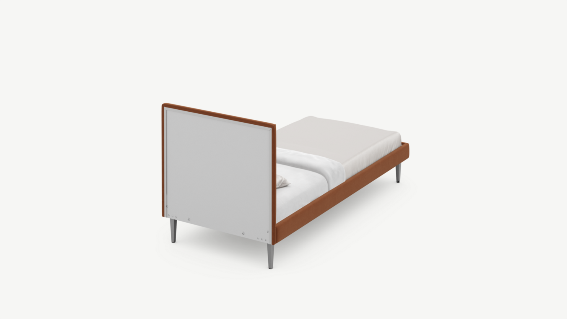 Кровать MOON FAMILY 1256 демонстрирует безупречный баланс изящных пропорций. Лаконичное изголовье, узкие царги и высокие опоры создают эффектный образ, привносящий в пространство спальни стильный и яркий акцент.
