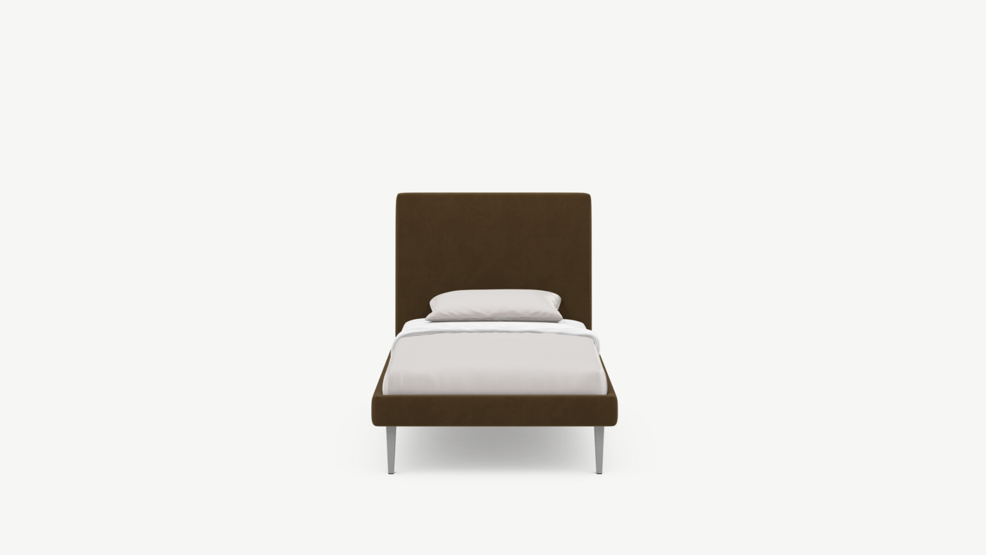 Кровать MOON FAMILY 1256 демонстрирует безупречный баланс изящных пропорций. Лаконичное изголовье, узкие царги и высокие опоры создают эффектный образ, привносящий в пространство спальни стильный и яркий акцент.