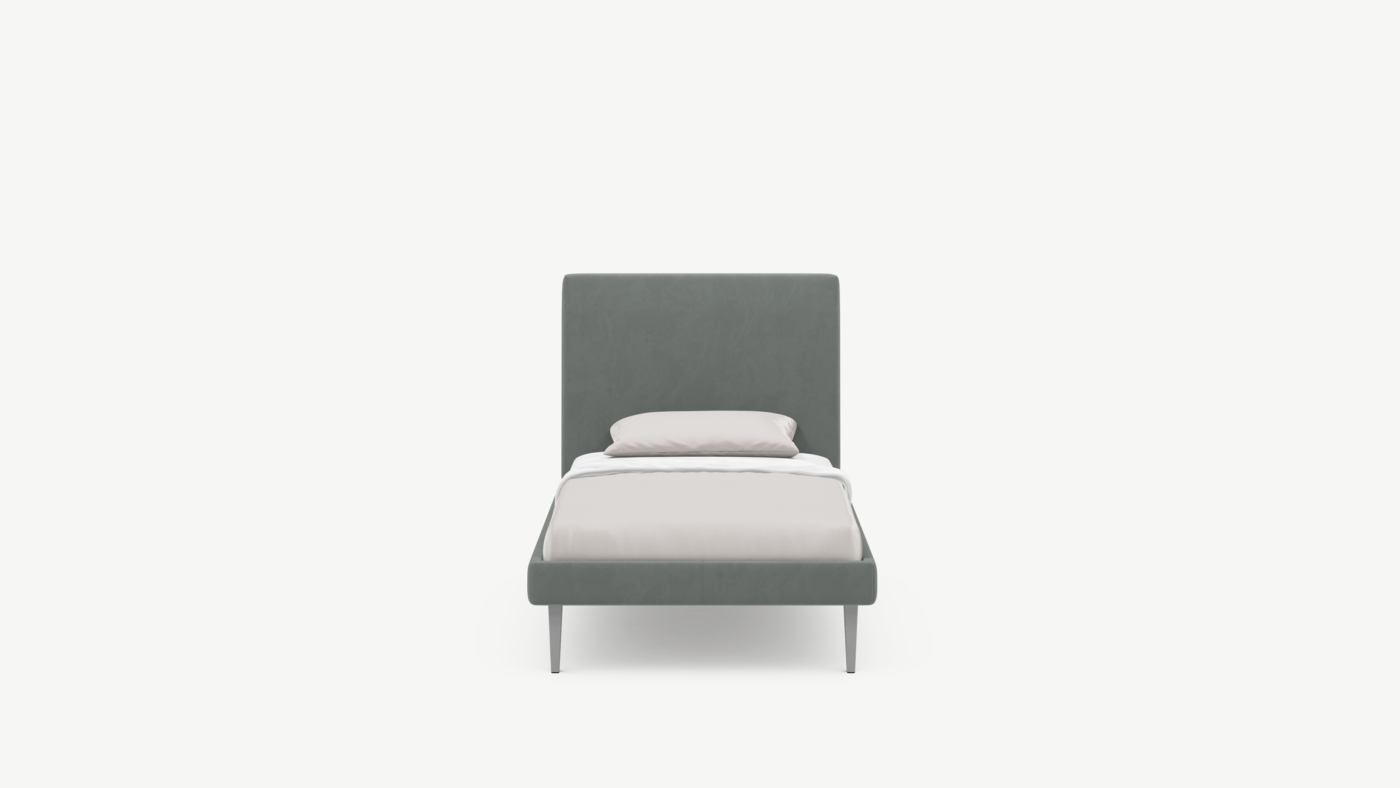 Кровать MOON FAMILY 1256 демонстрирует безупречный баланс изящных пропорций. Лаконичное изголовье, узкие царги и высокие опоры создают эффектный образ, привносящий в пространство спальни стильный и яркий акцент.