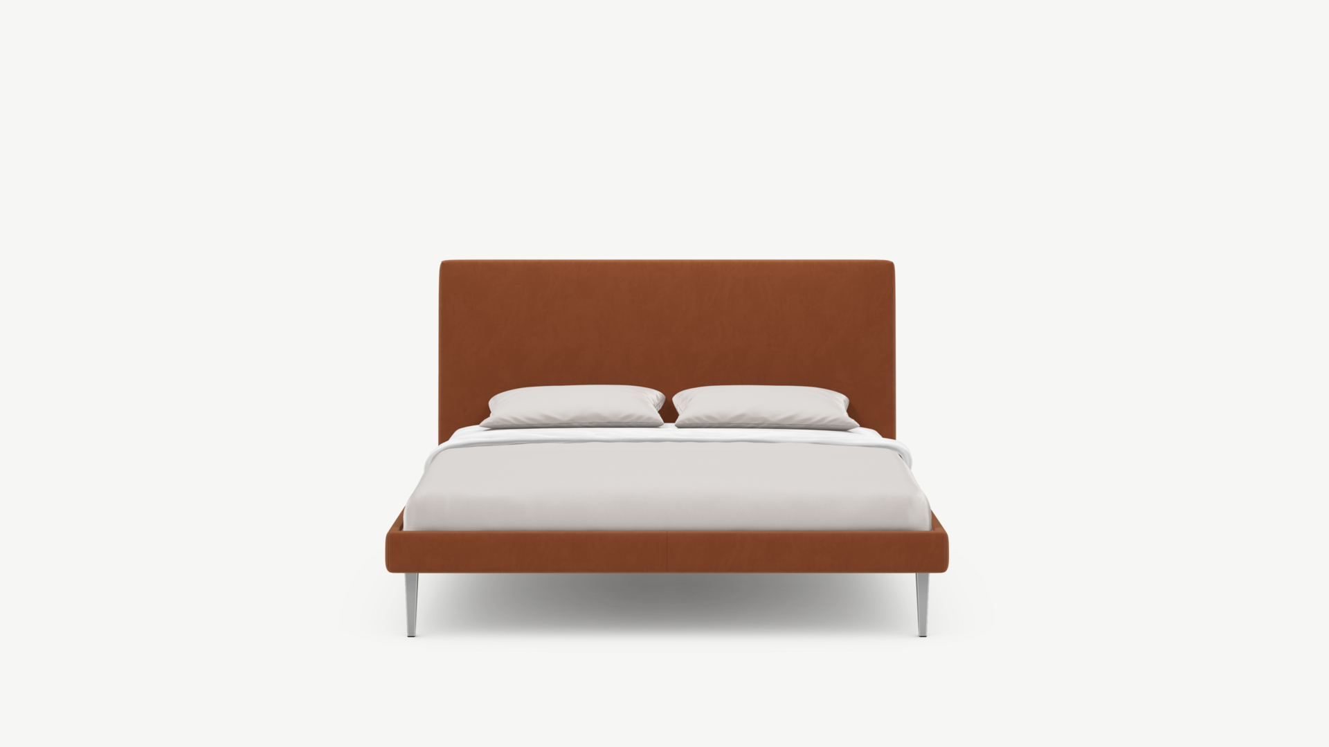 Кровать MOON FAMILY 1256 демонстрирует безупречный баланс изящных пропорций. Лаконичное изголовье, узкие царги и высокие опоры создают эффектный образ, привносящий в пространство спальни стильный и яркий акцент.