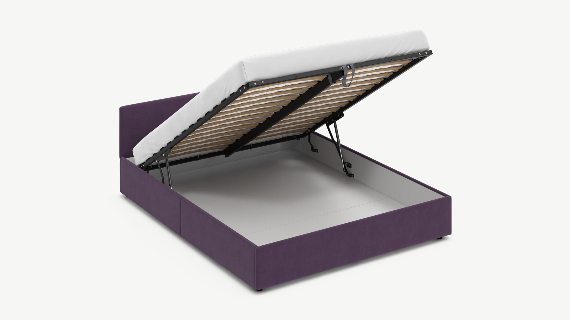 • Скрытая под основанием вместительная емкость без внутренних перегородок позволяет использовать всю площадь подкроватного пространства для хранения вещей.