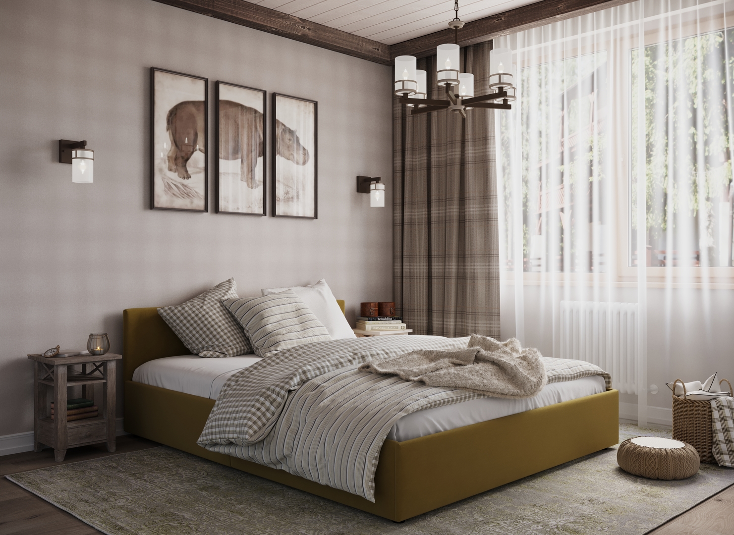 Создать гармоничный интерьер и завершить образ спальни помогут дополнительные аксессуары, например: тумбы, банкетки, подушки.