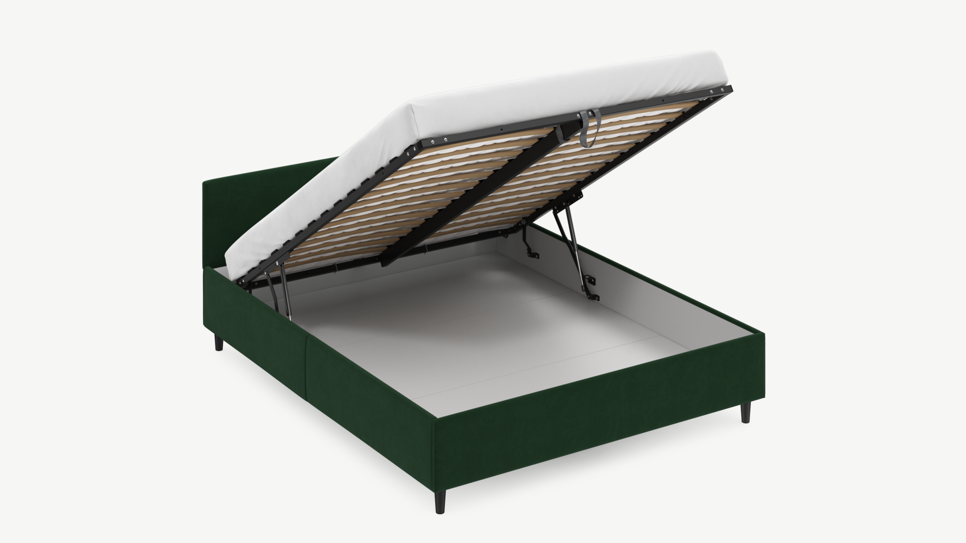 • Скрытая под основанием вместительная емкость без внутренних перегородок позволяет использовать всю площадь подкроватного пространства для хранения вещей.